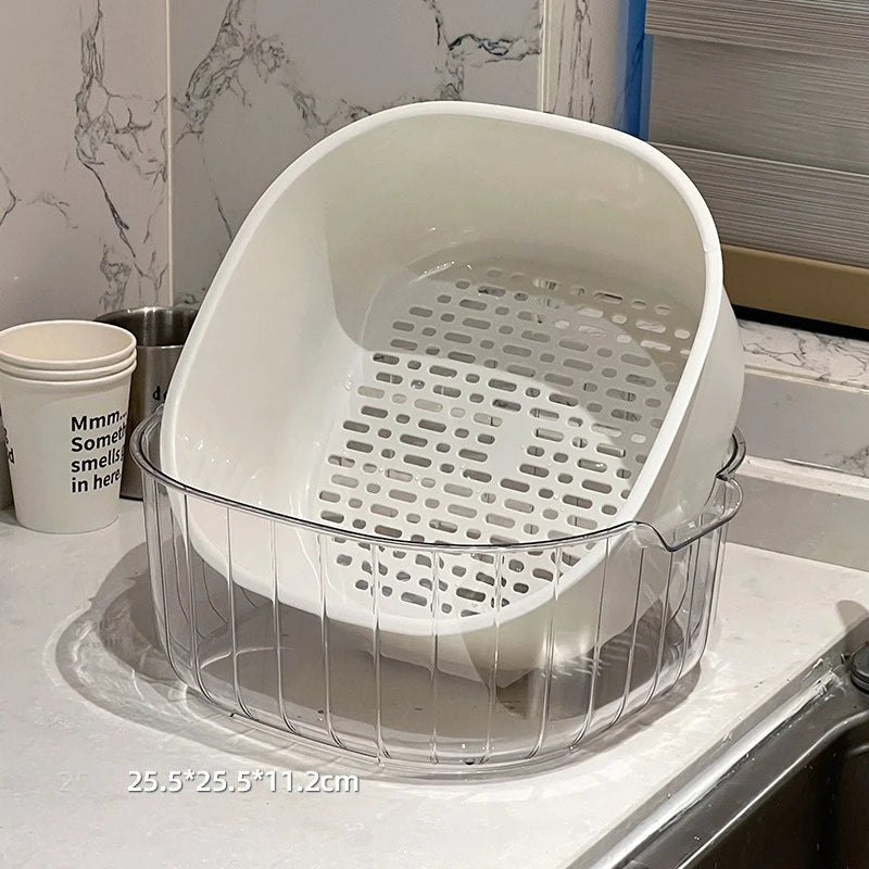 Popxstar 2-Tier Strainer Colander with Fruit Tray Dual-Purpose Kitchen Living Room Drain Basket Wash Vegetable Bowl Fruit Display Basket