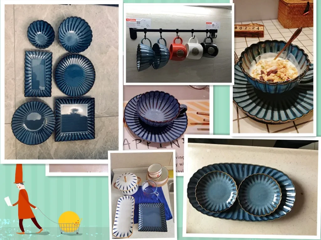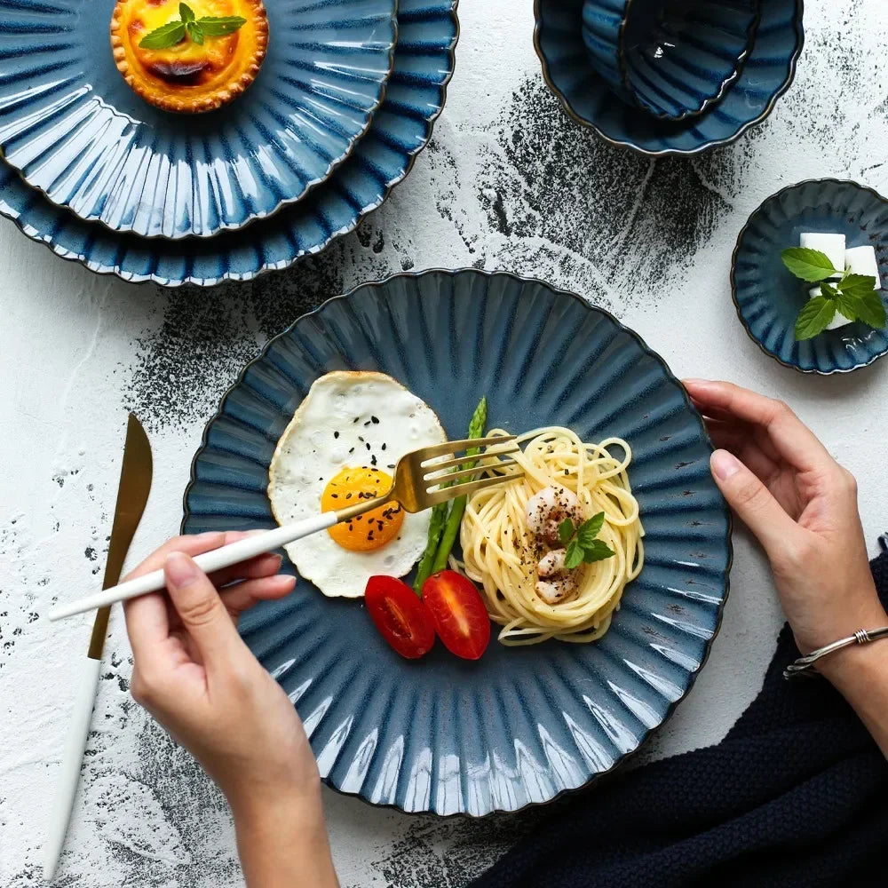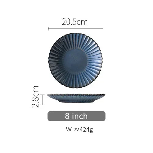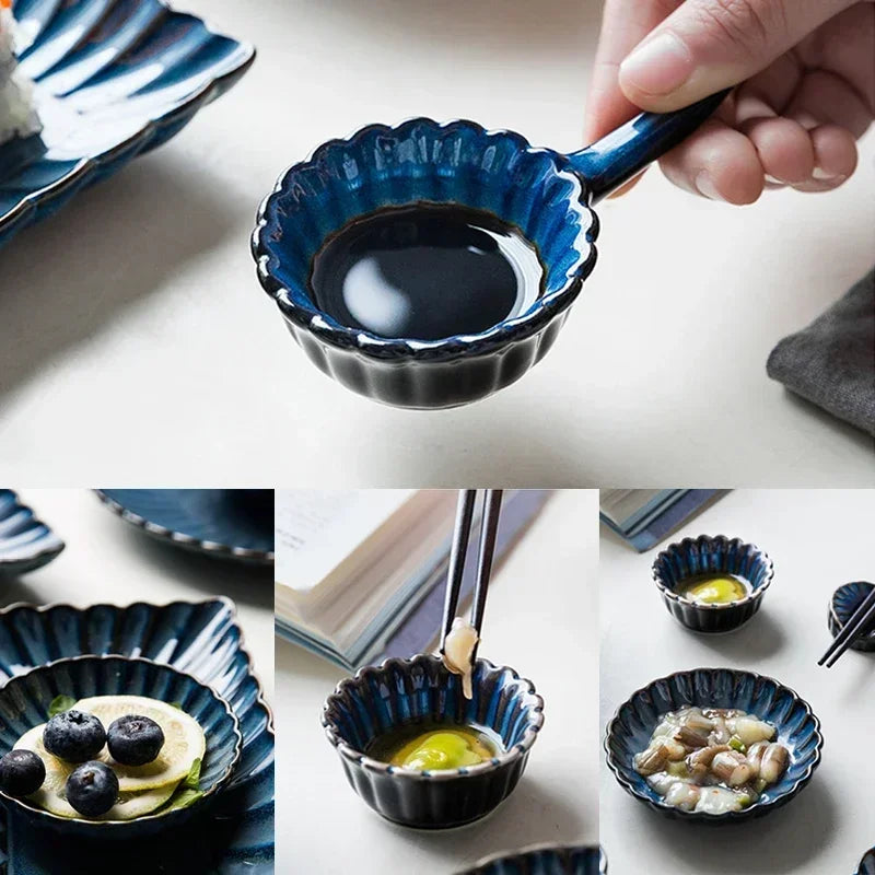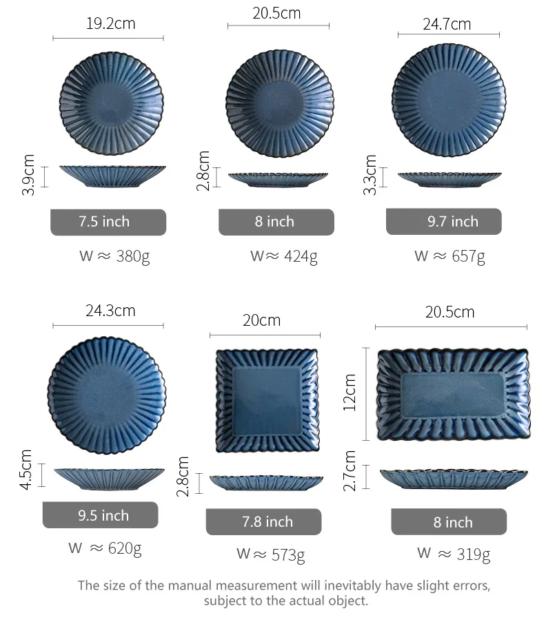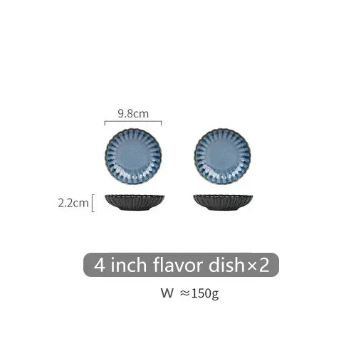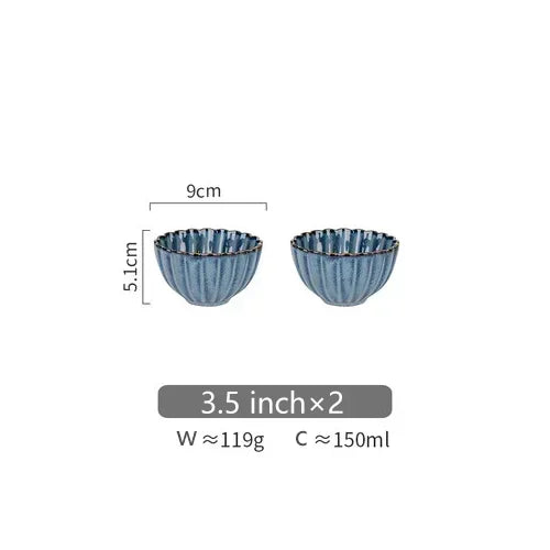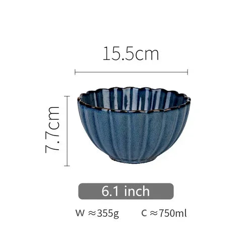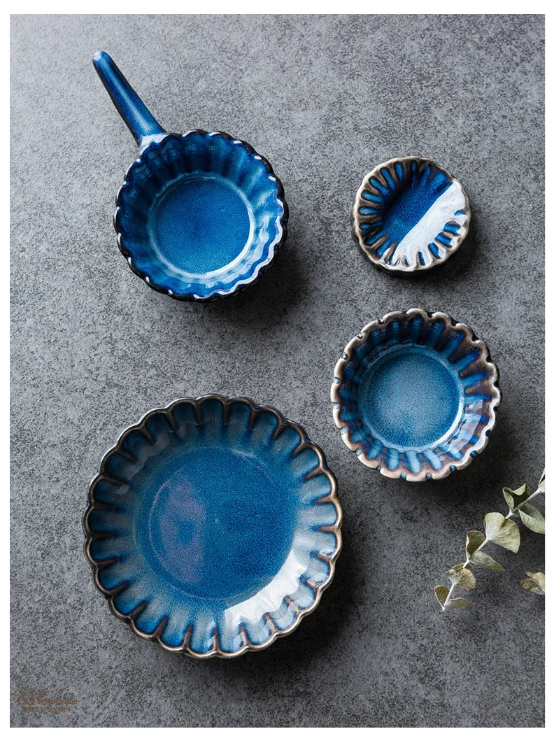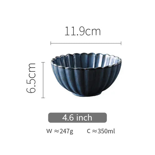 Popxstar European Ceramic Tableware Set Blue Chrysanthemum Shape Rice Soup Bowl Dish Fruit Plate Creative Retro Kitchen Utensils