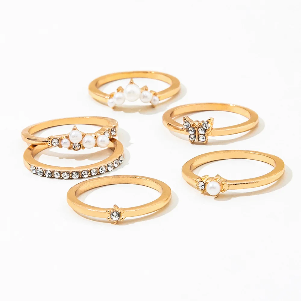 Popxstar Punk Silver Color Liquid Butterfly Rings Set For Women Fashion Irregular Wave Metal Knuckle Rings Aesthetic Egirl Gothic Jewelry