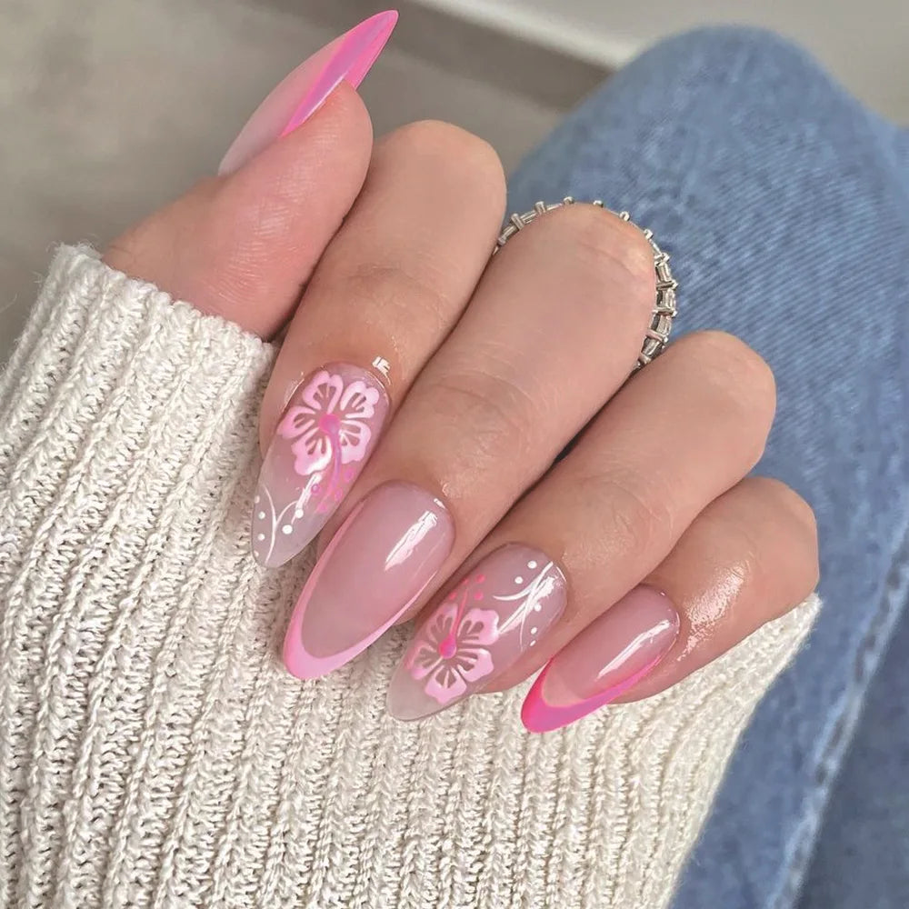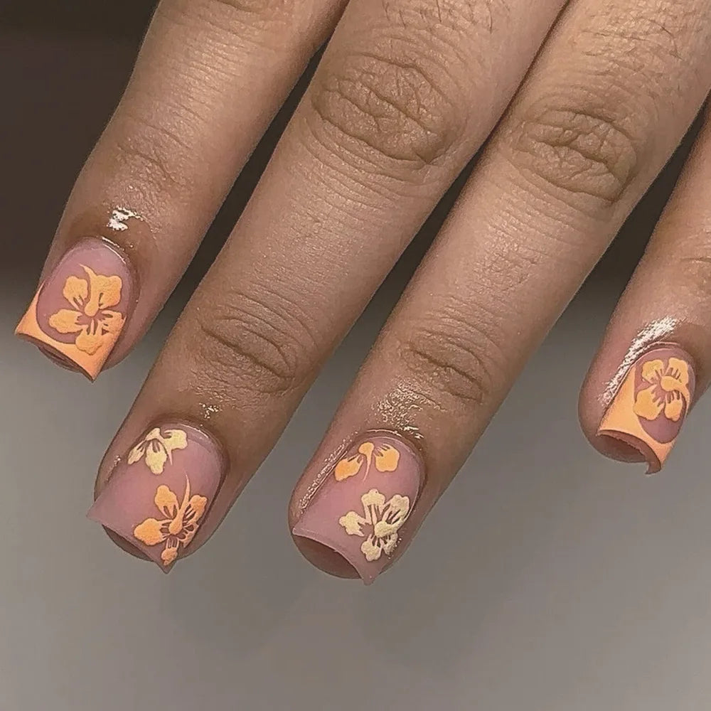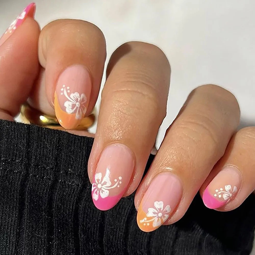 Popxstar 24Pcs Blush Pink Fake Nails White Flower Designs Elegant Charms Press on Nails Square Head False Nails Patches for Women Girls