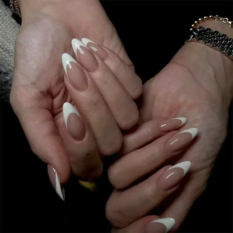 Popxstar 24Pcs French False Nails Almond Fake Nails with Glue Press on White Edge Design Wearable Simple Ins Pink Stiletto Nail Tips