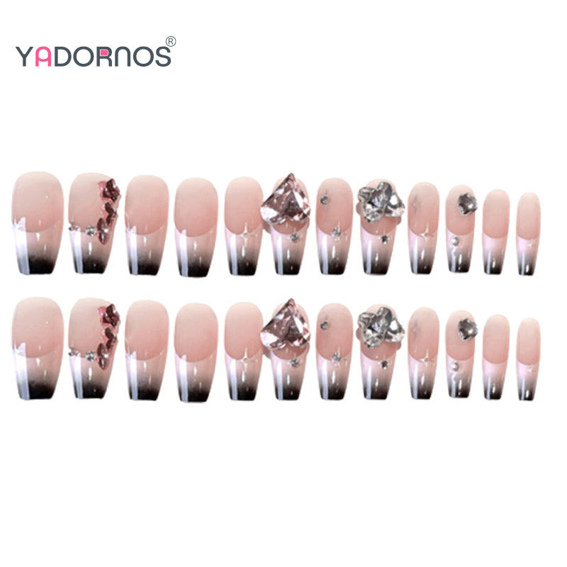 Popxstar 24Pcs Pink Fake Nails Y2K Style Press on Nails Big Sparkly Rhinestone Designs Black French Tips False Nails for Women y2k Girls