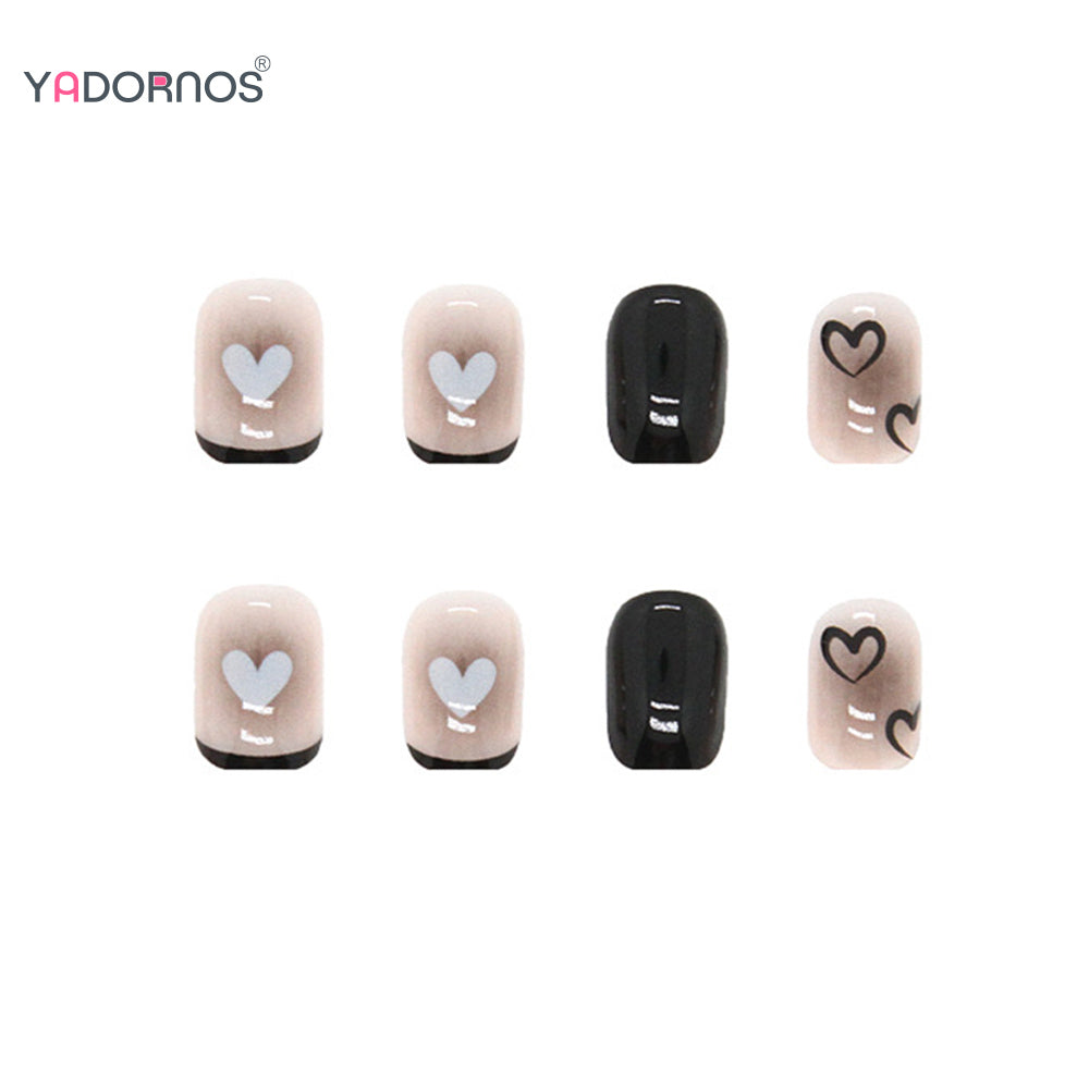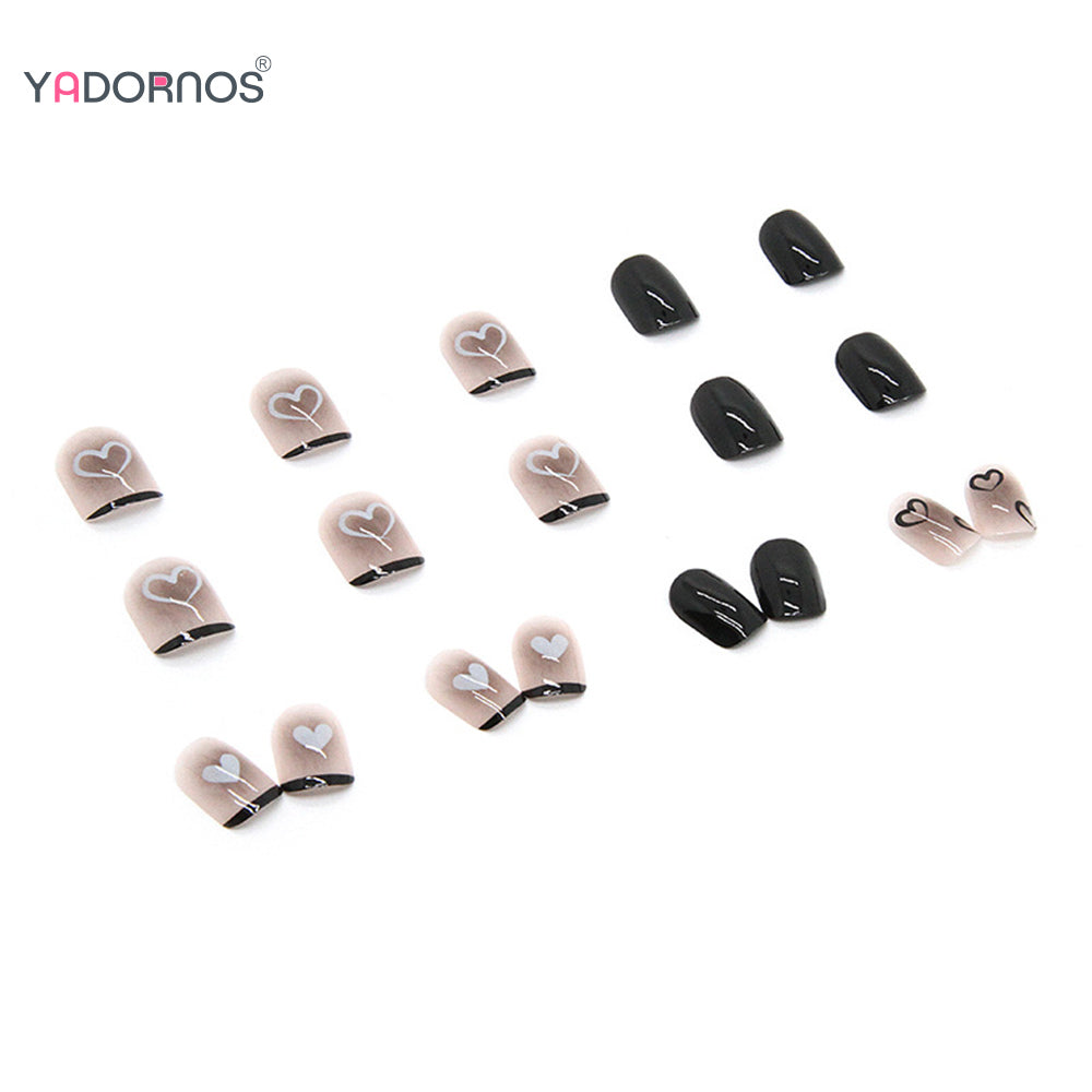 Popxstar 24pcs Y2K Fake Nails with Lovely Black Heart Designs Reusable French False Nails Full Cover Short Press On Nails for y2k Girls