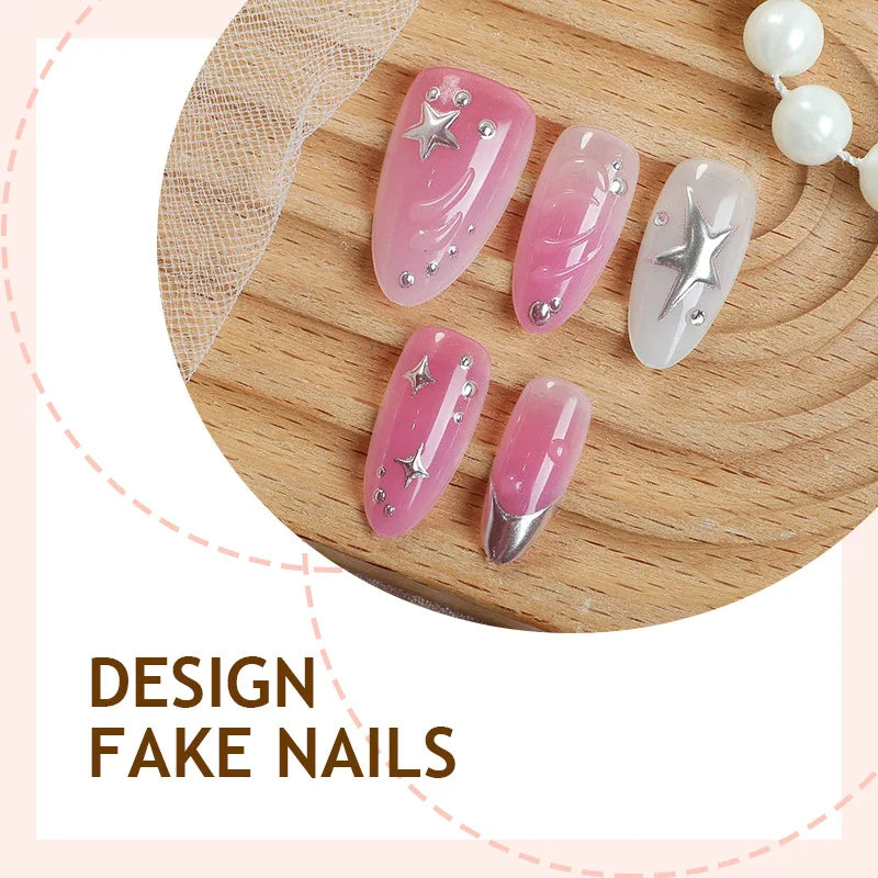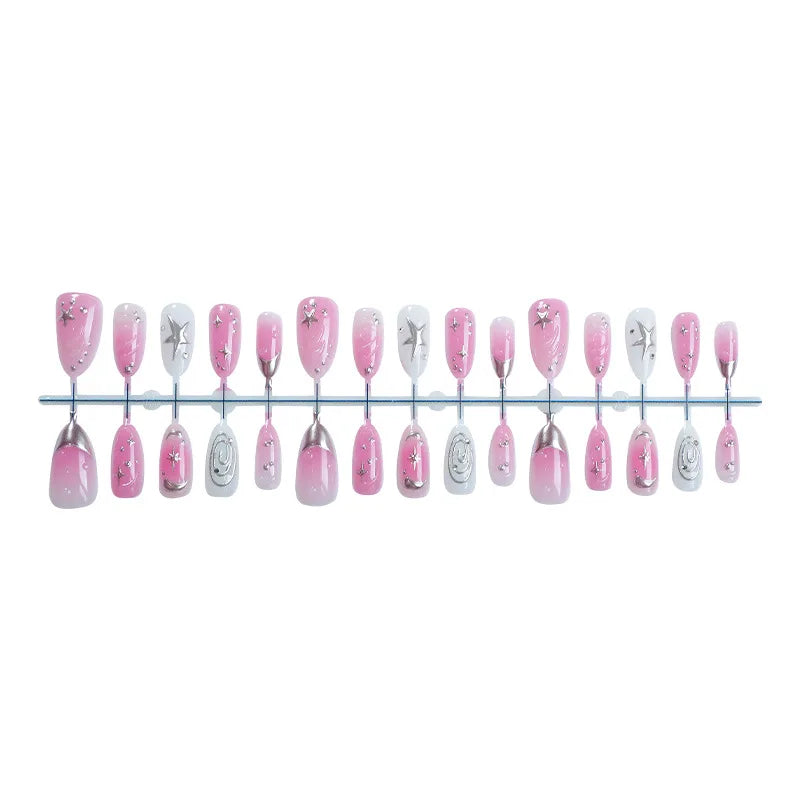 Popxstar 30Pcs Blush Pink False Nails Y2K Girls Charms Manicure Almond Press On Nails Silver Star Designers Full Cover Fake Nails Art