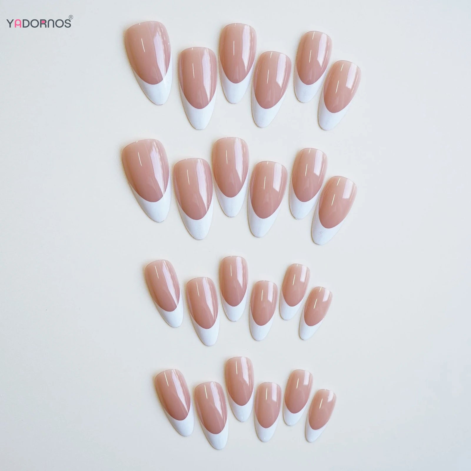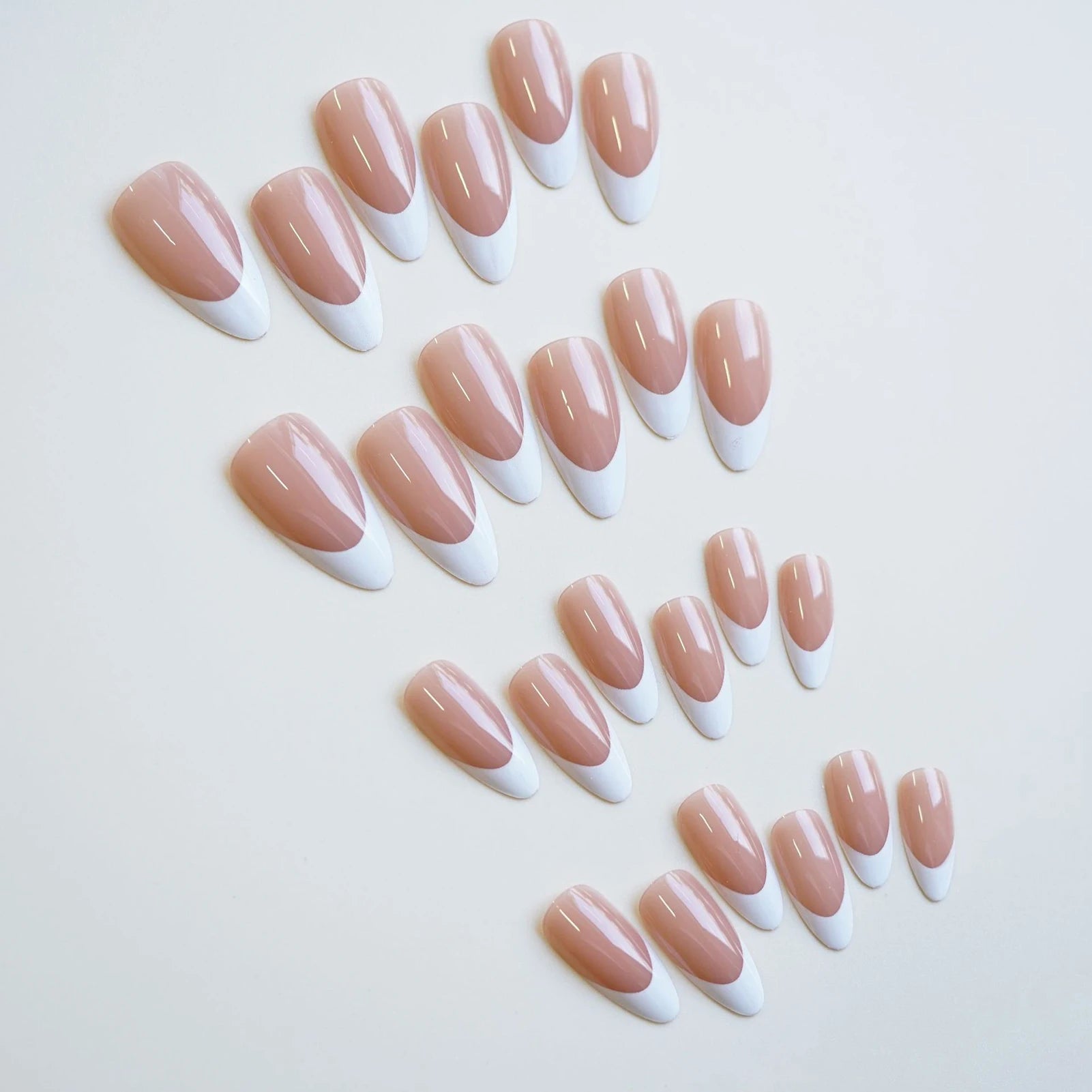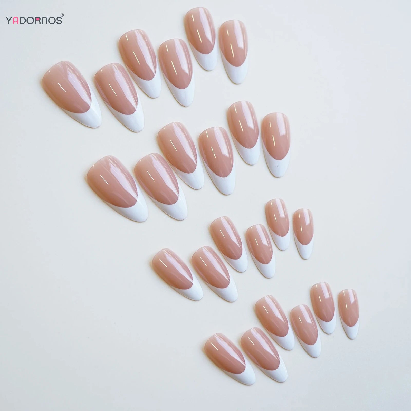 Popxstar Glossy Nude Pink Color False Nails White French Tip Almond Press on Nails Full Cover Wearable Fake Nails for Women and Girls