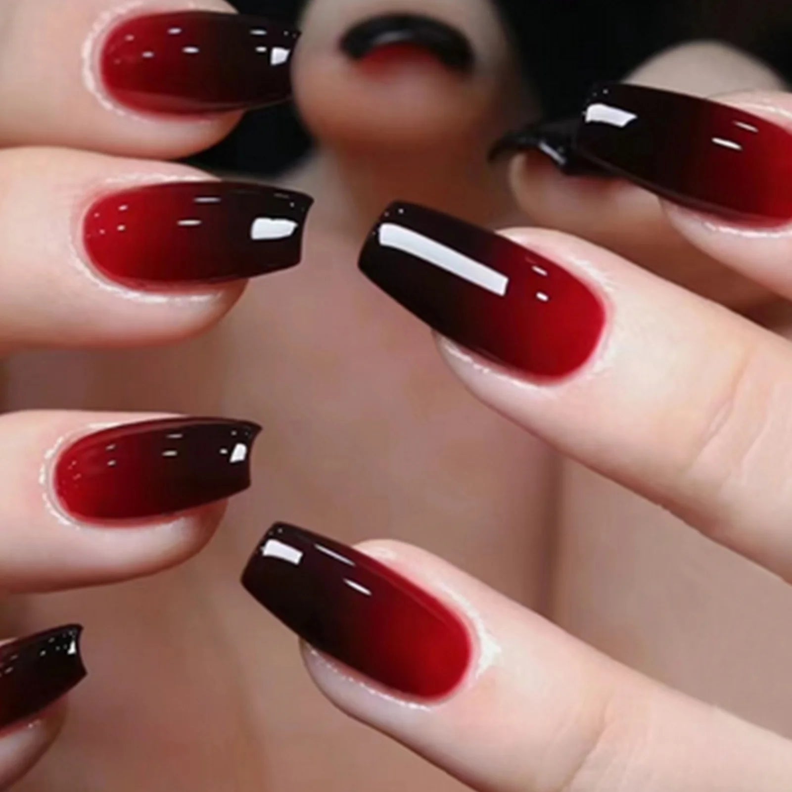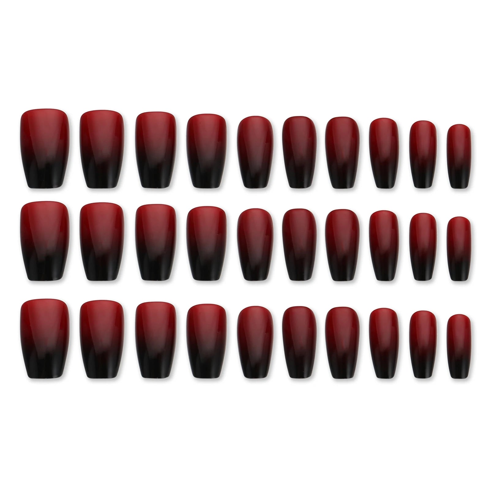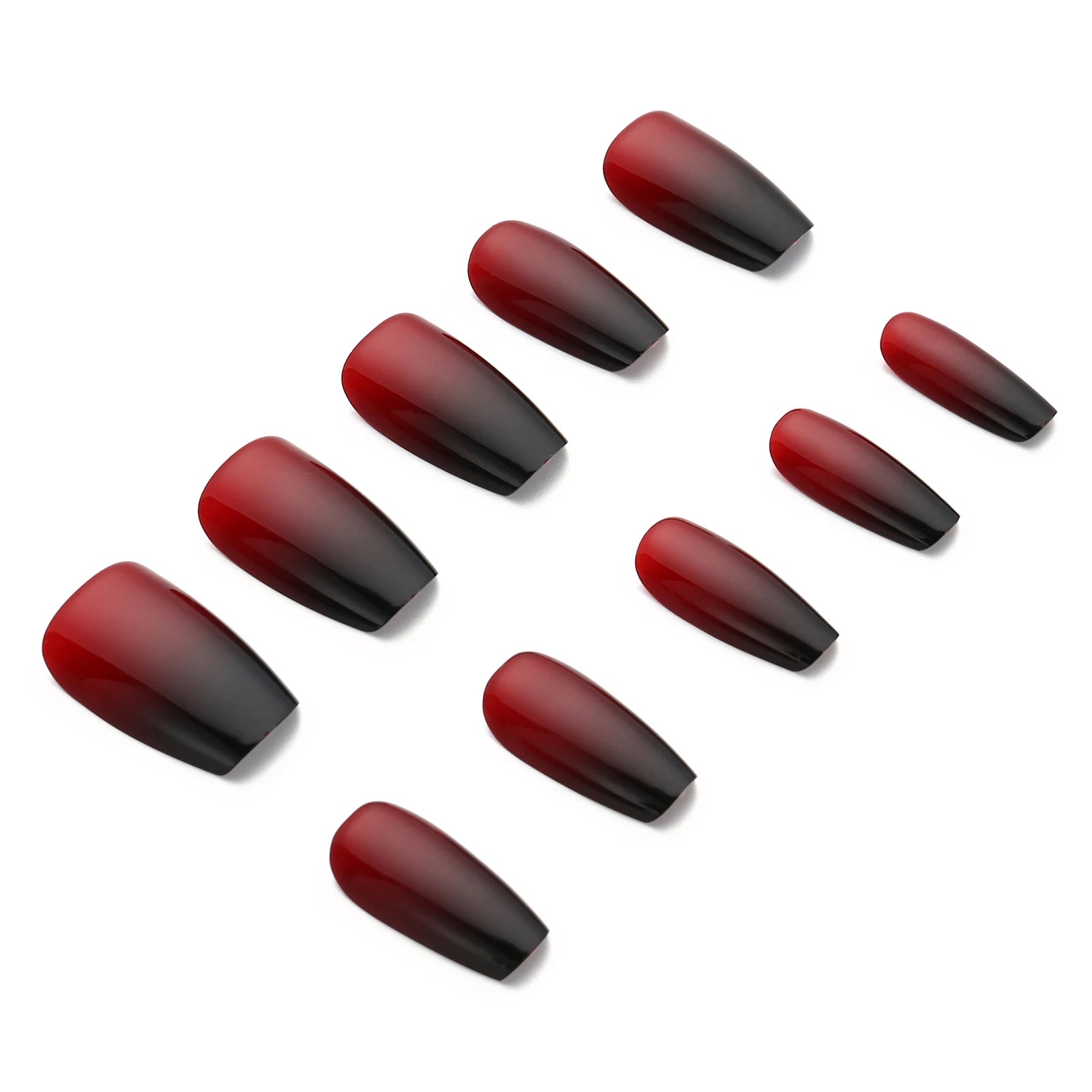 Popxstar Gradient Red/Black Fake Nails for Halloween Party 24Pcs Wine Red Press On Nails Short/Medium Length False Nails Charm Manicure