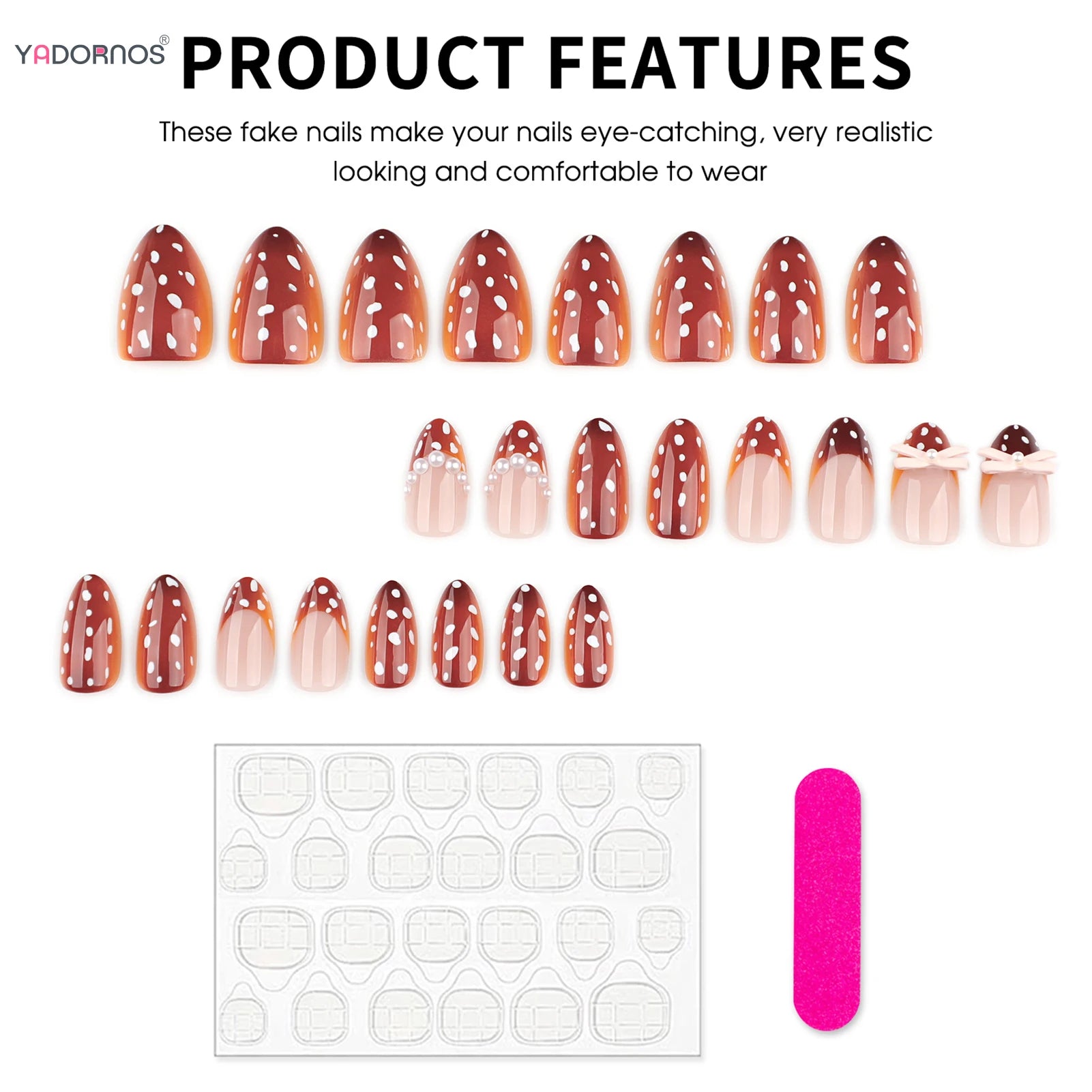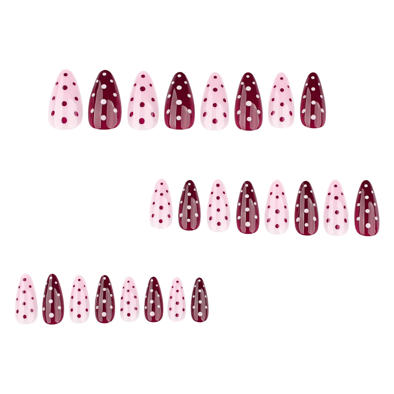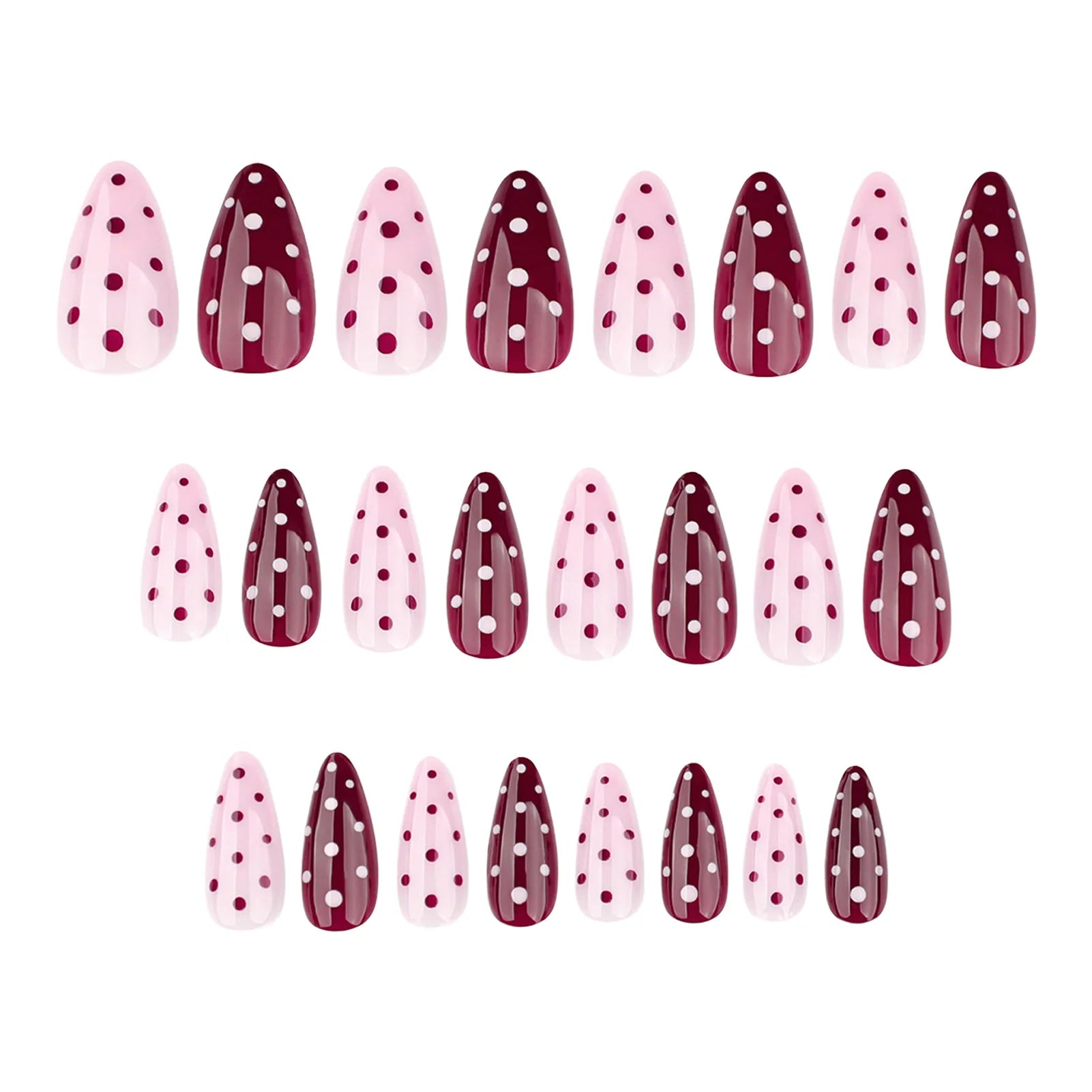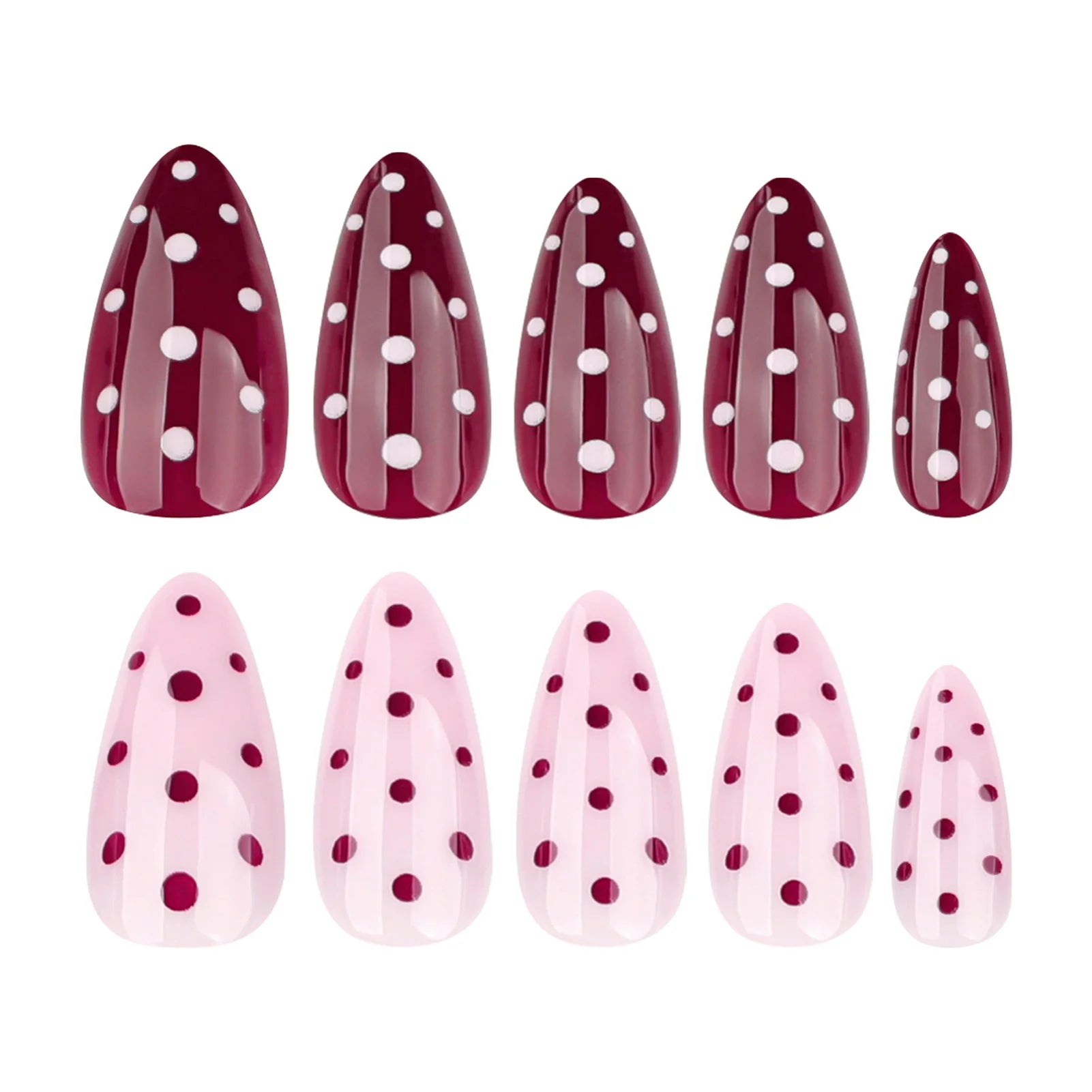 Popxstar Red/Pink Almond Fake Nails 24Pcs Full Cover Acrylic Press On Nails with Polka Dot Designers Cool Girls Charm Manicure Nails Art