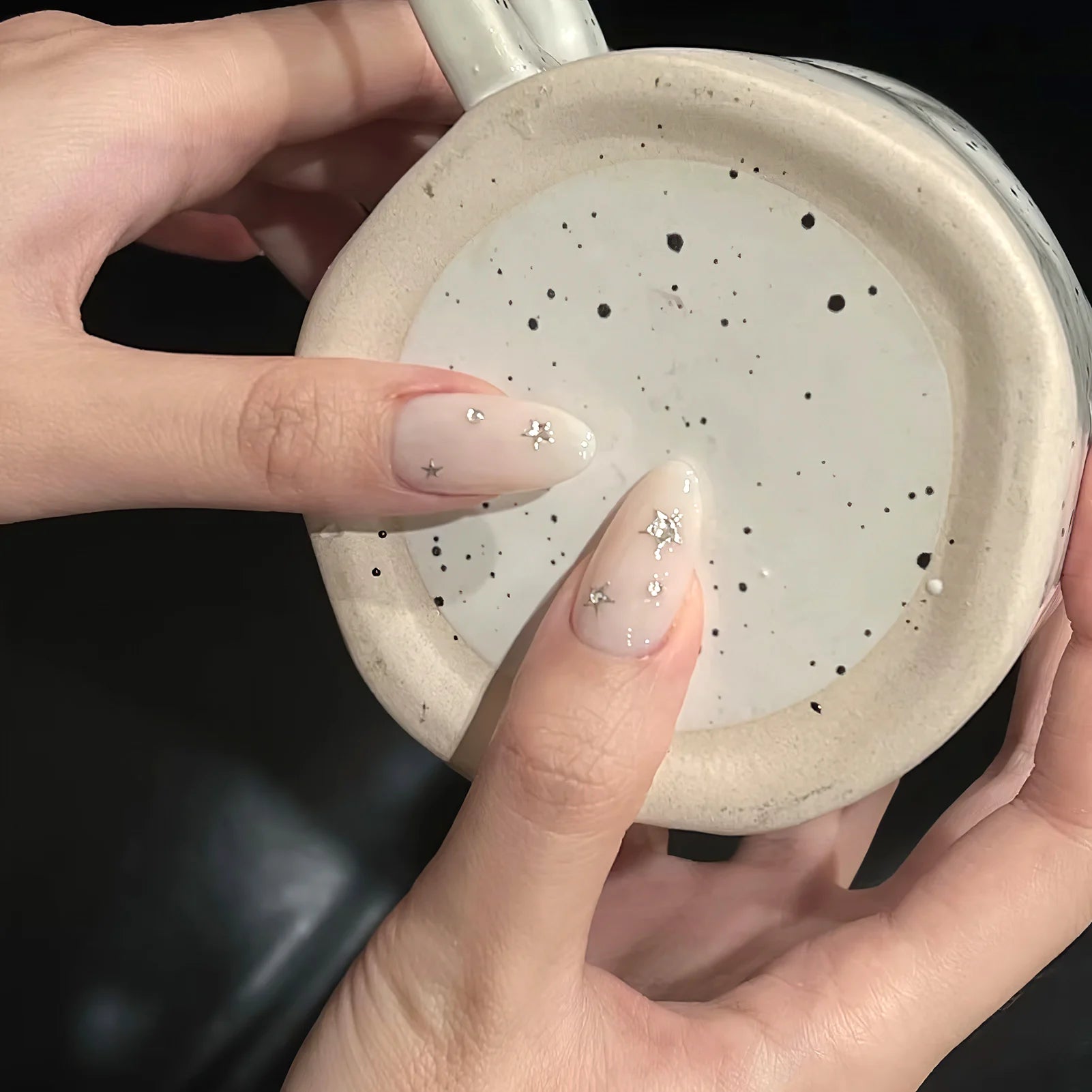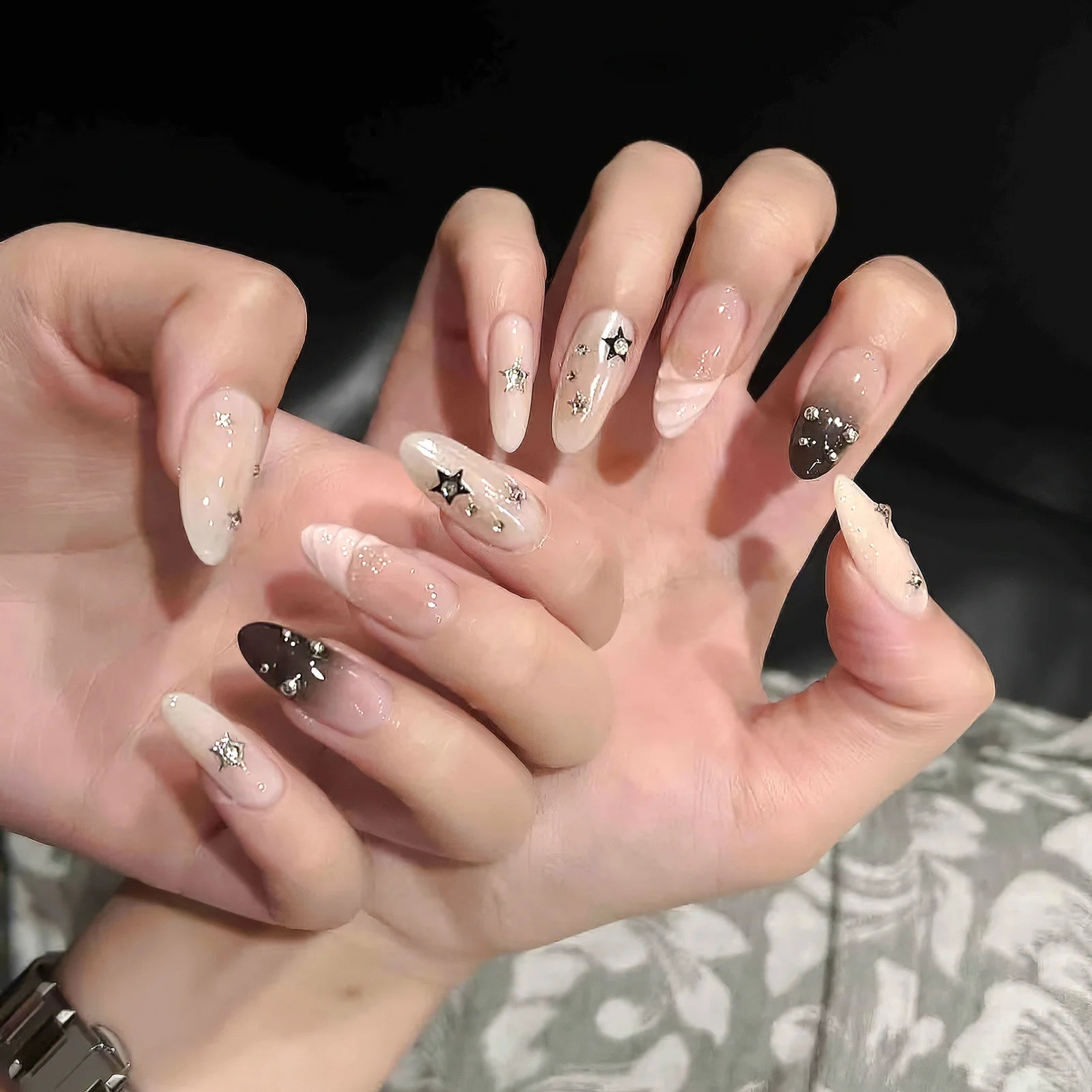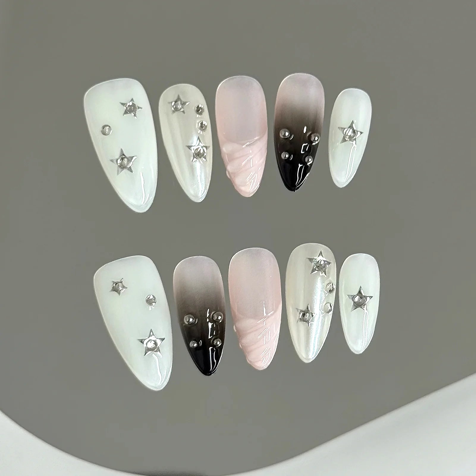 Popxstar  10Pcs Y2K Girls Handmade Press On Nails Alloy Star Designs Long Almond Fake Nails Full Cover Stick-on Nails Art for Women
