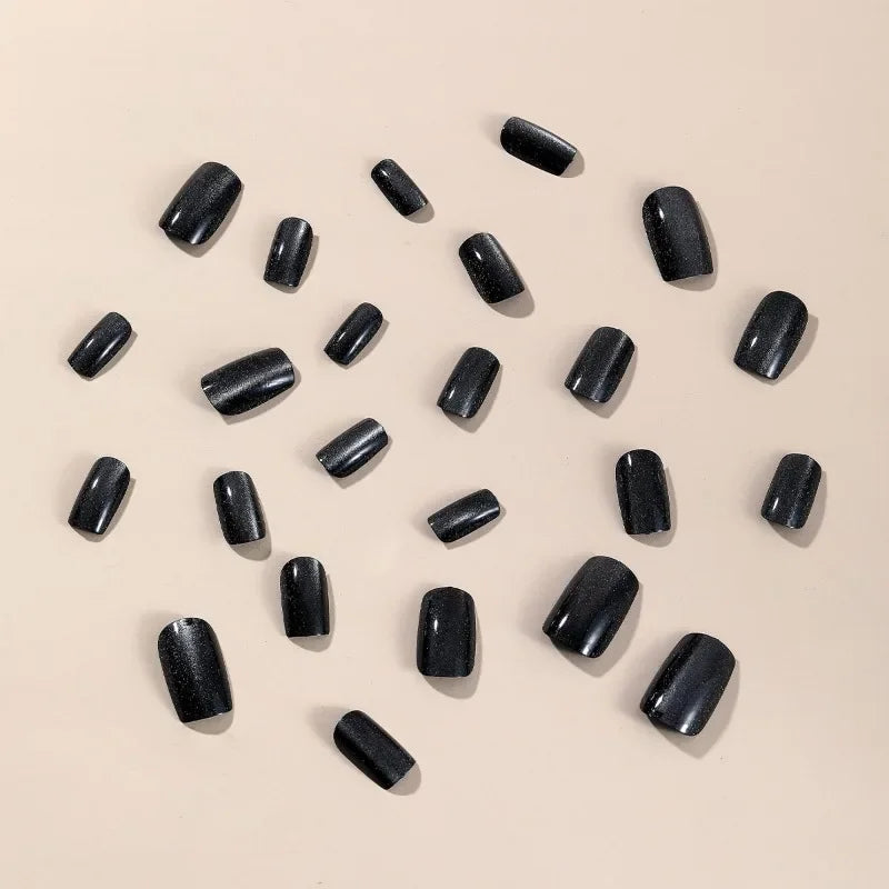 Popxstar  24Pcs Black Blue Purple Red Cat Eyes False Nails with Tools Press on Nails for Girls Square Nail Tips Fake Nails Set with Glue