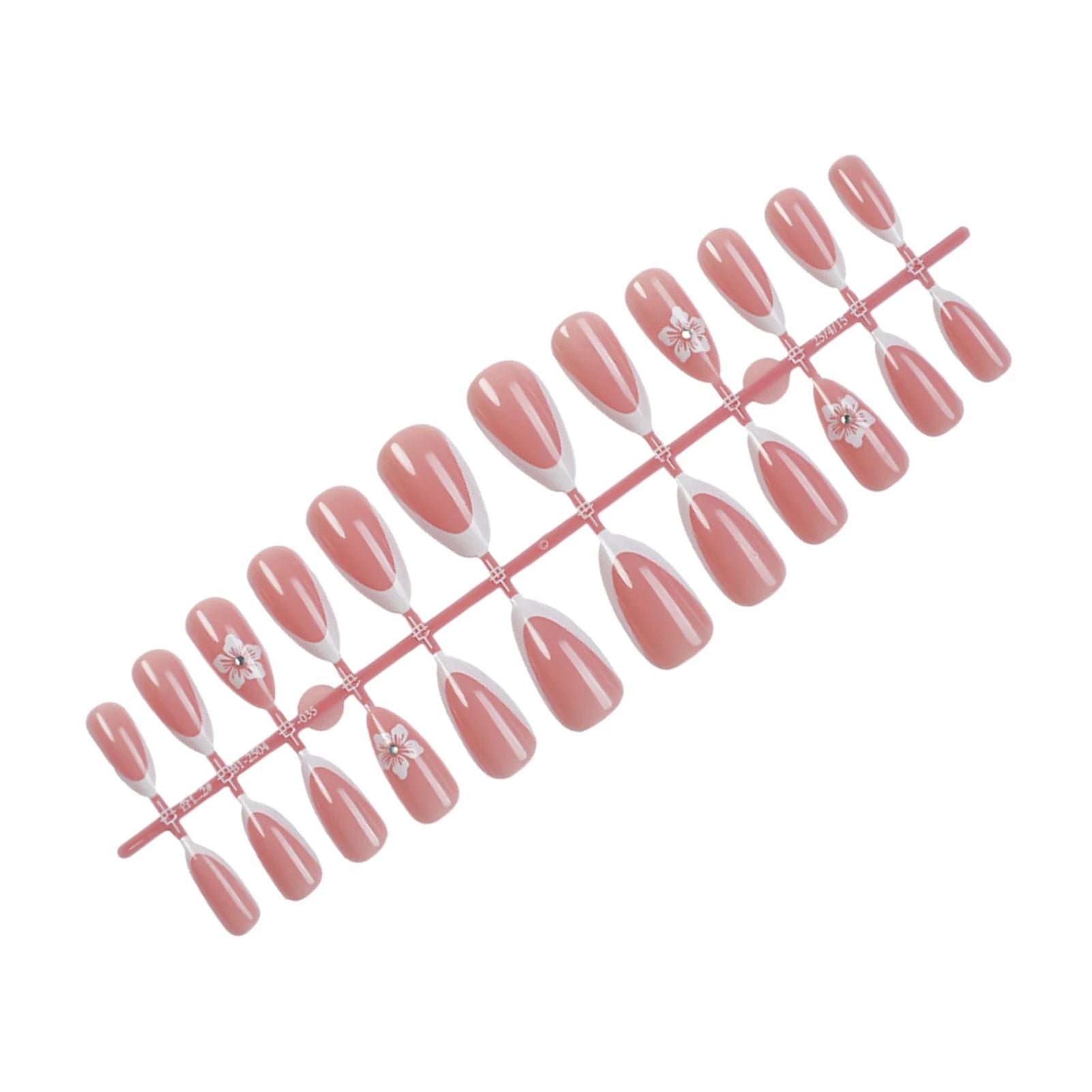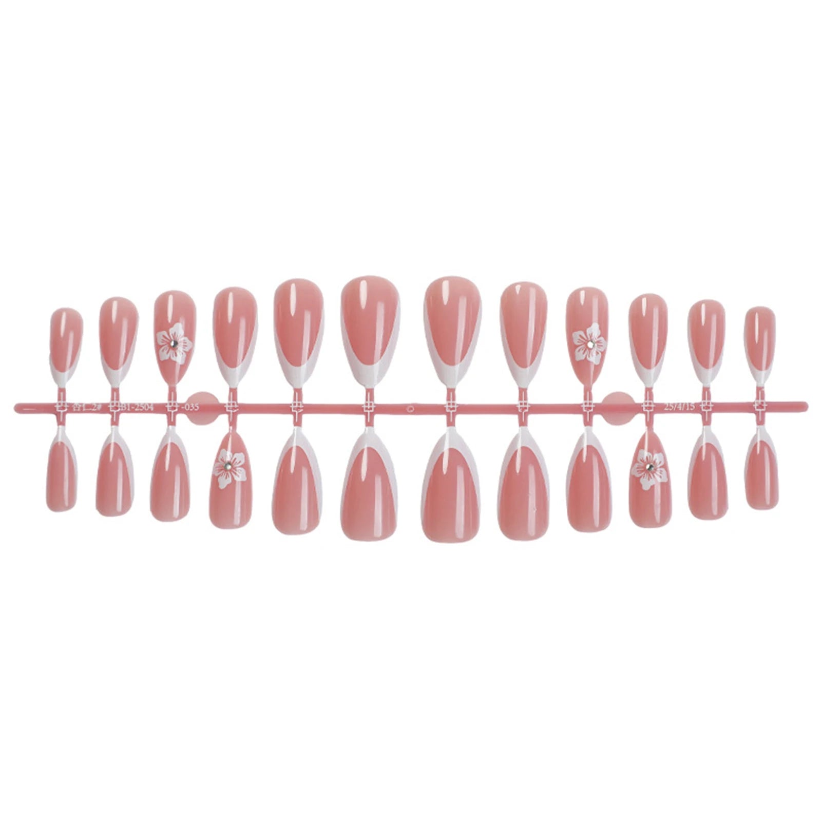 Popxstar  24Pcs Nude Pink Color Press On Nails Almond White French Tip Fake Nails Fairy Flower Printed Sweet Girls DIY Manicure Nails Art