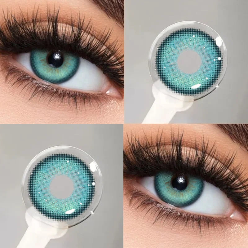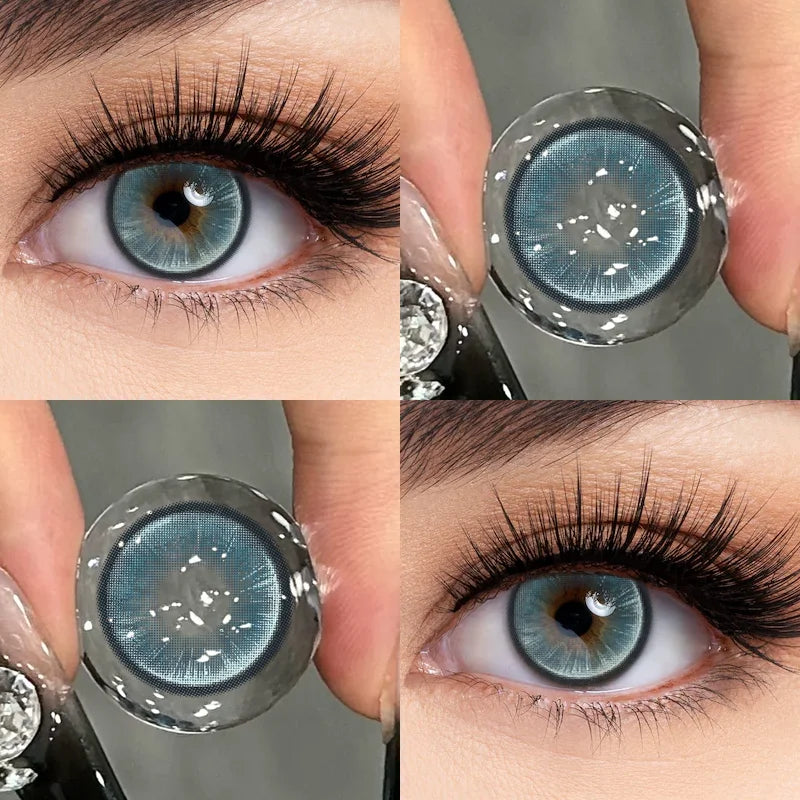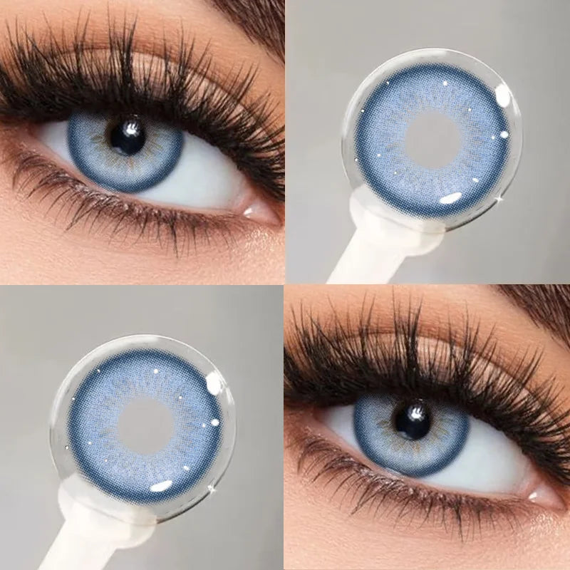 Popxstar 2Pcs Blue Myopia Contact Lenses for Eyes with Degree 0 to -8.00 Degree Brown Iris Lens Fashion Lenses Soft Beauty Pupil