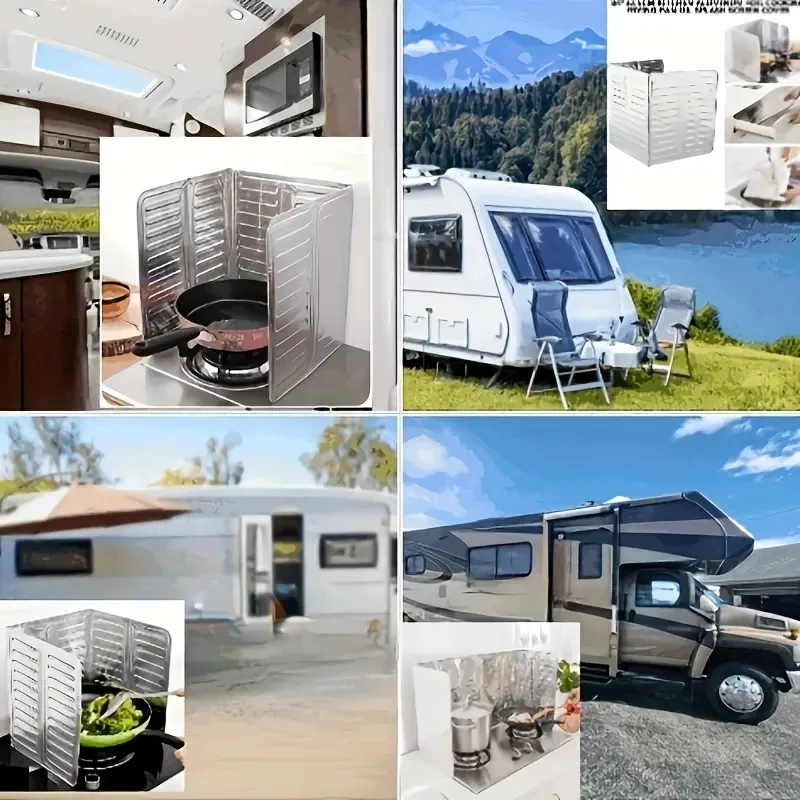 Popxstar Aluminum Foldable Kitchen Gas Stove Baffle Plate Portable Frying Pan Oil Splash Protection Screen Household Kitchen Accessories