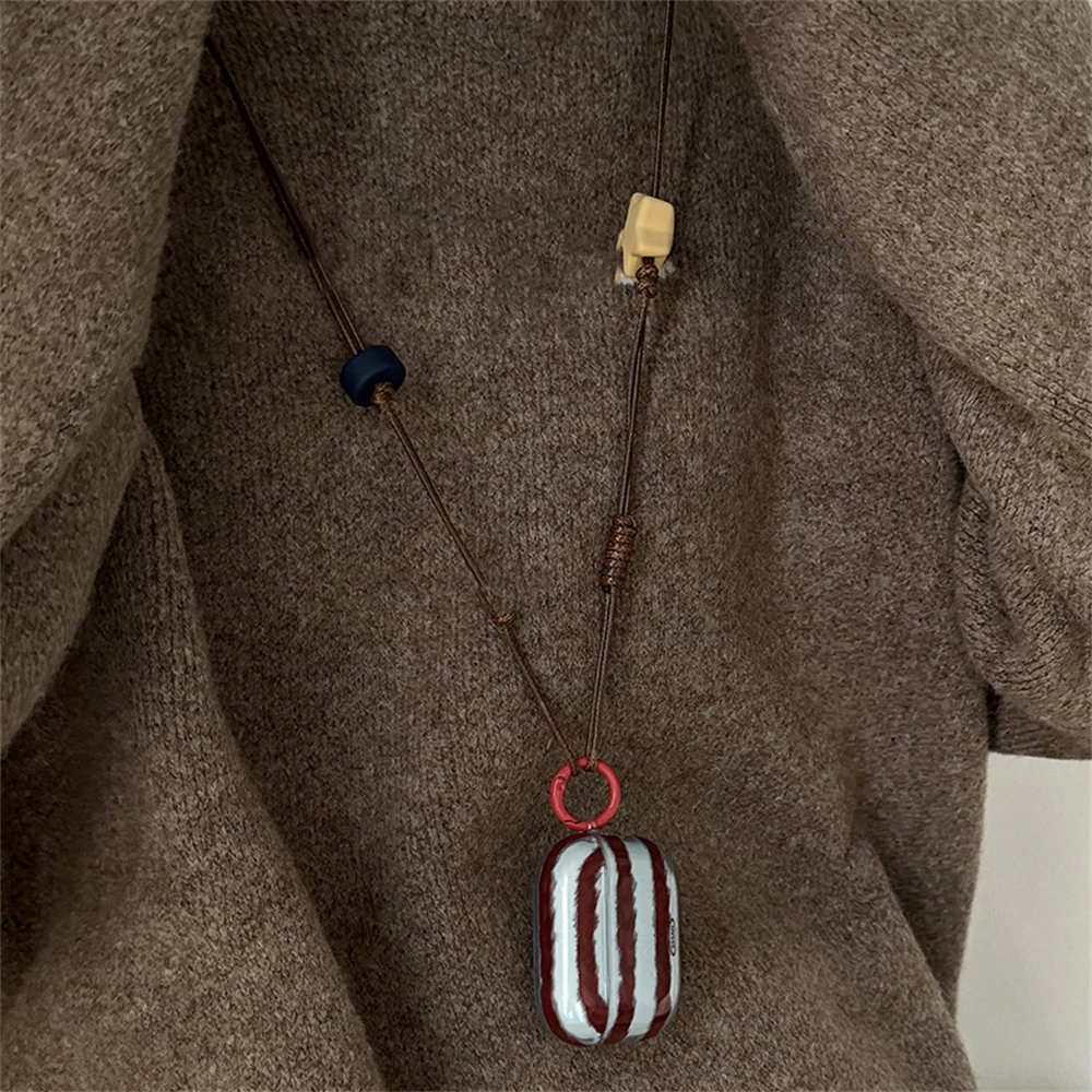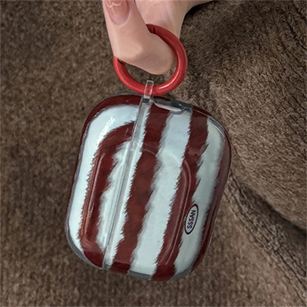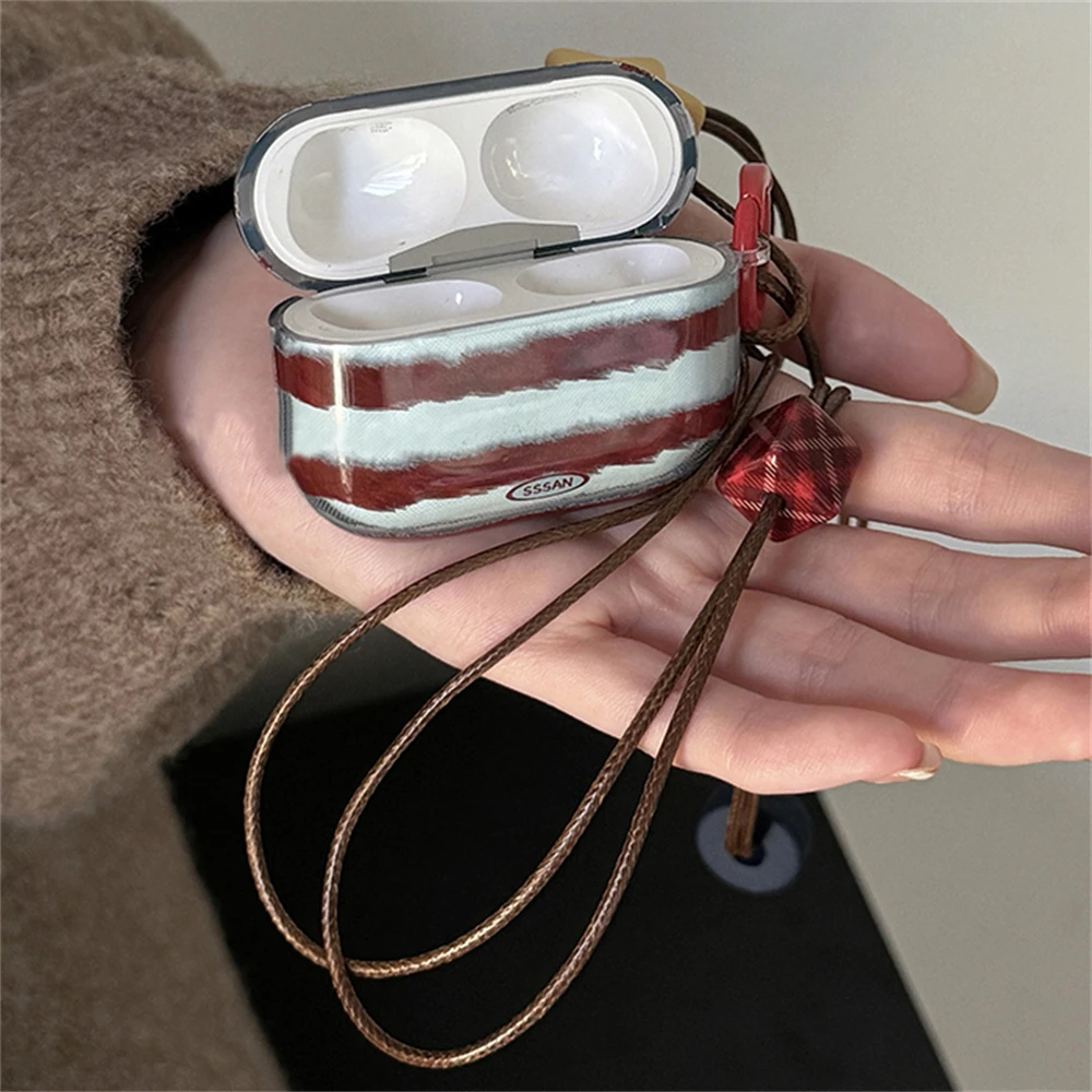 Popxstar Cute 3D Blue Brown Stripe Pattern Headphones Case For AirPods 1 2 3 4 With Lanyard Protective Shell Soft Cover For AirPods Pro 2
