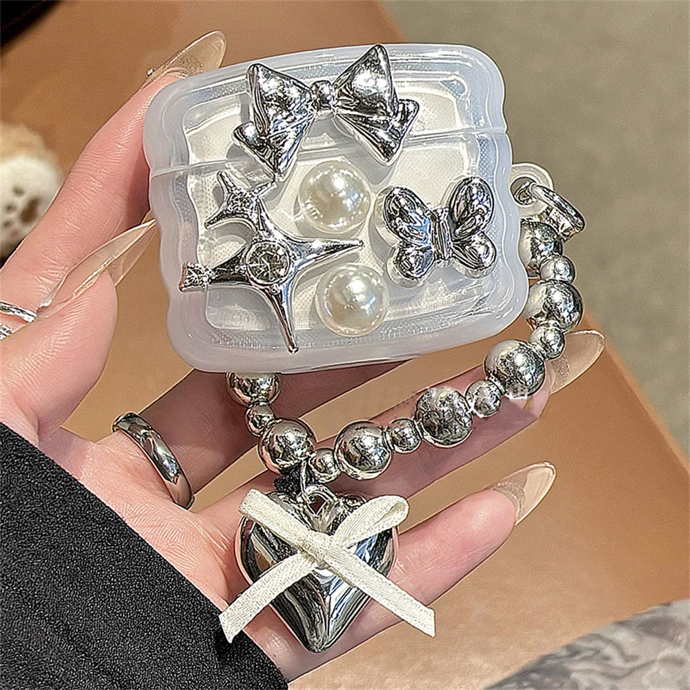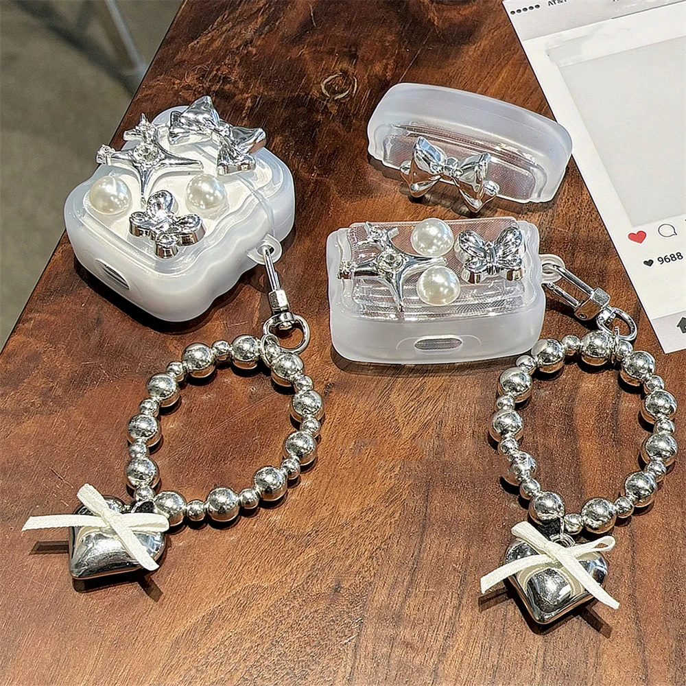 Popxstar Cute Rhinestone Star Pearl Bowknot Headphones Protective Shell Soft Cover For AirPods 1 2 3 With Pendant Case For AirPods Pro 2