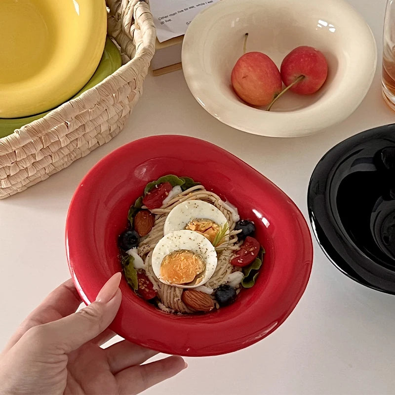 Popxstar Ins Ceramic Saucer Korean Style Dessert Yogurt Oats Bowl Cream Color Fruit Salad Container Food Display Plate Kitchen Utensils
