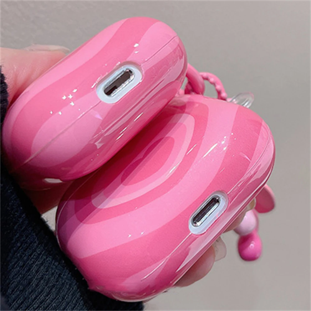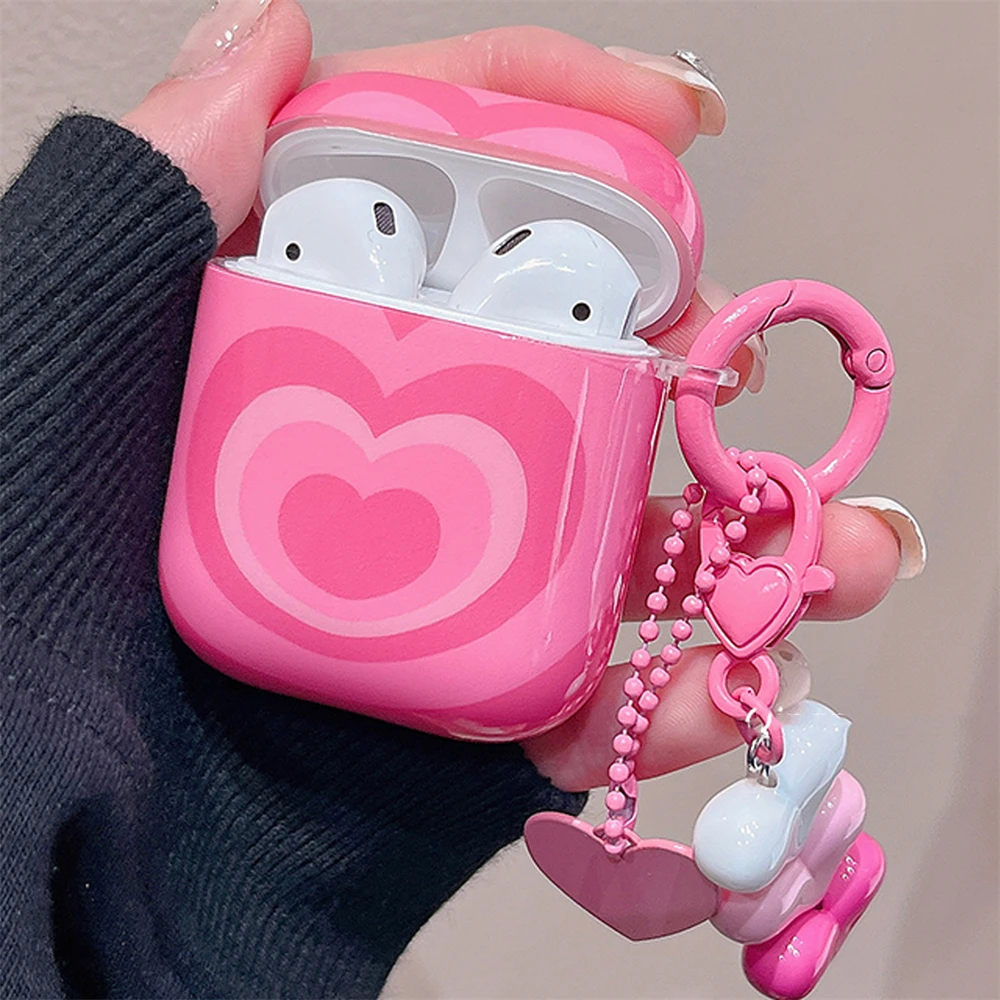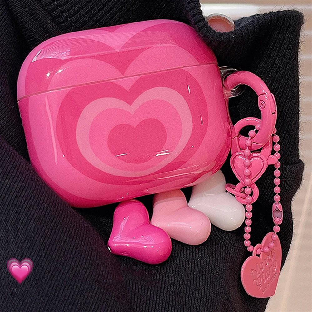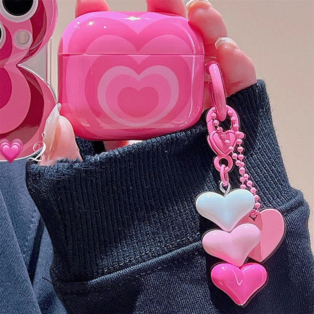 Popxstar Korean Cute 3D Pink Gradual Change Love Heart Headphones Case For AirPods 1 2 3 With Beads Pendant Soft Cover For AirPods Pro 2
