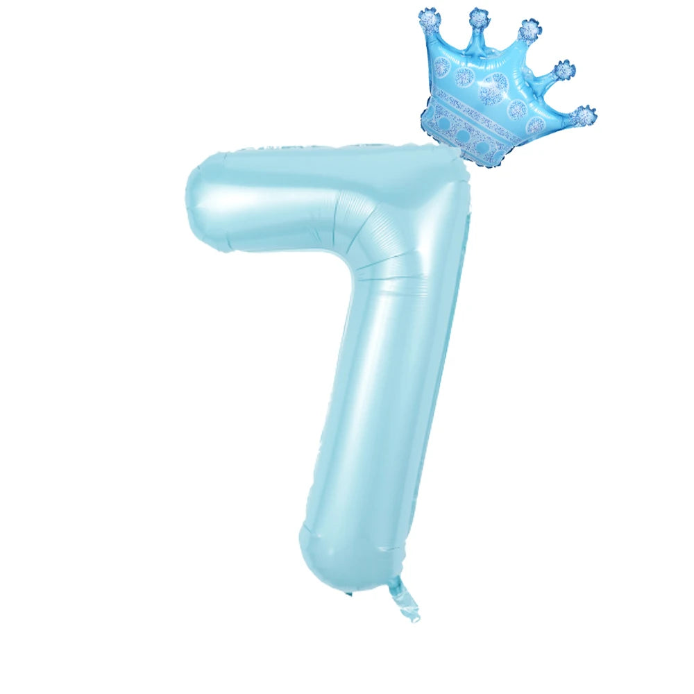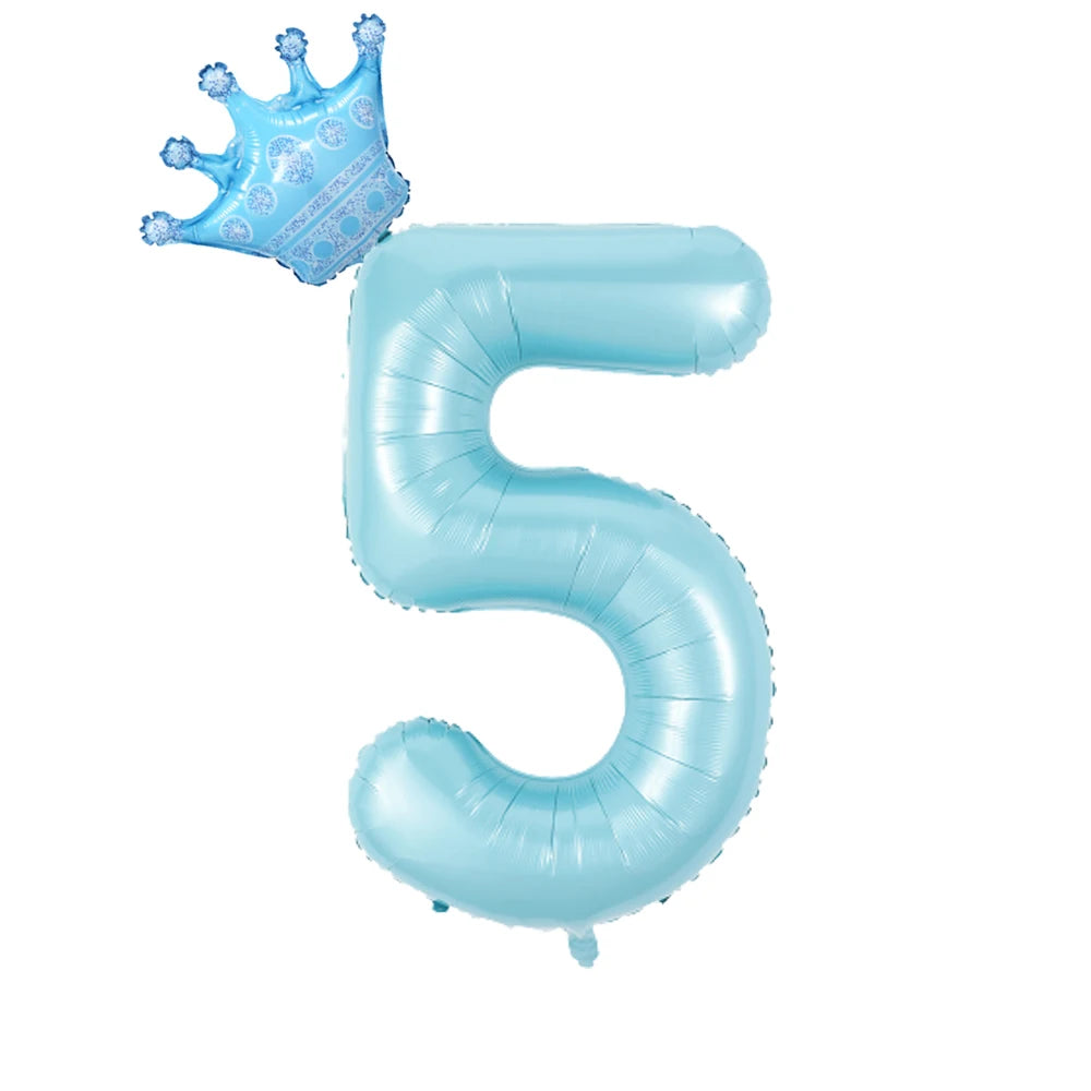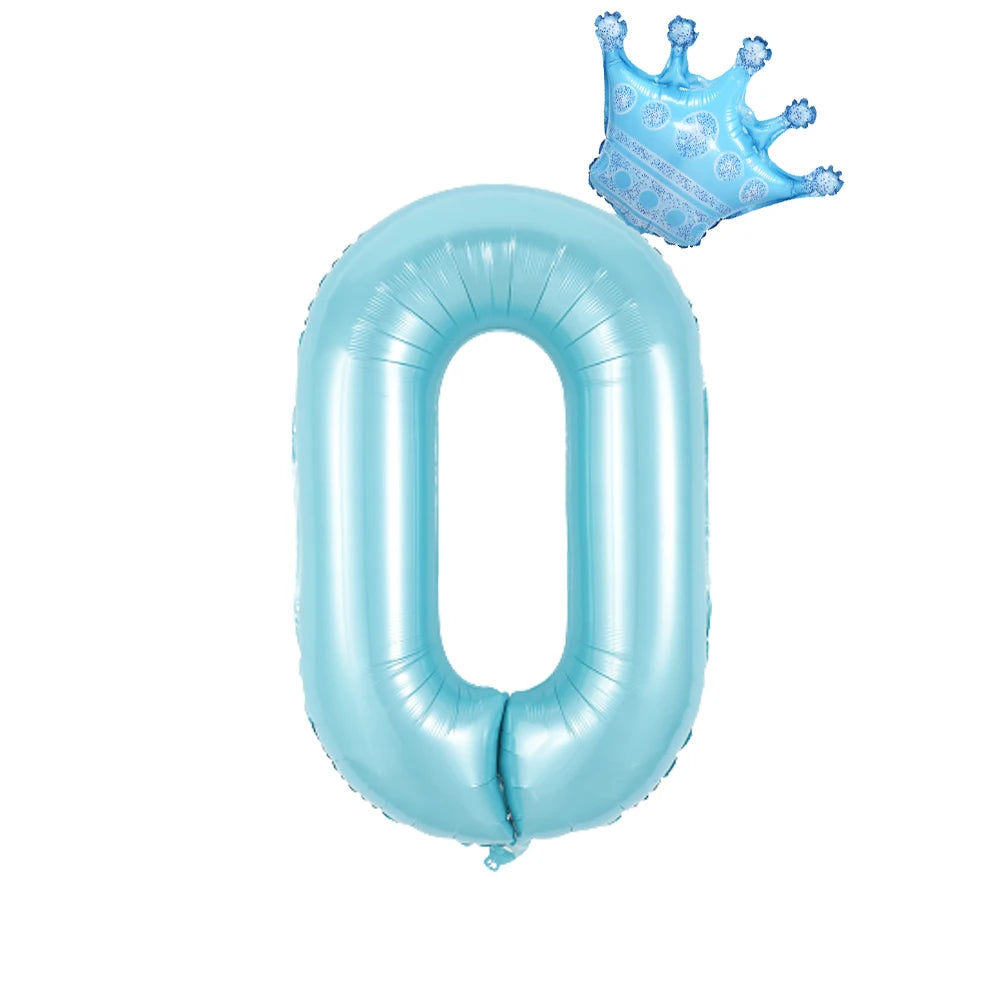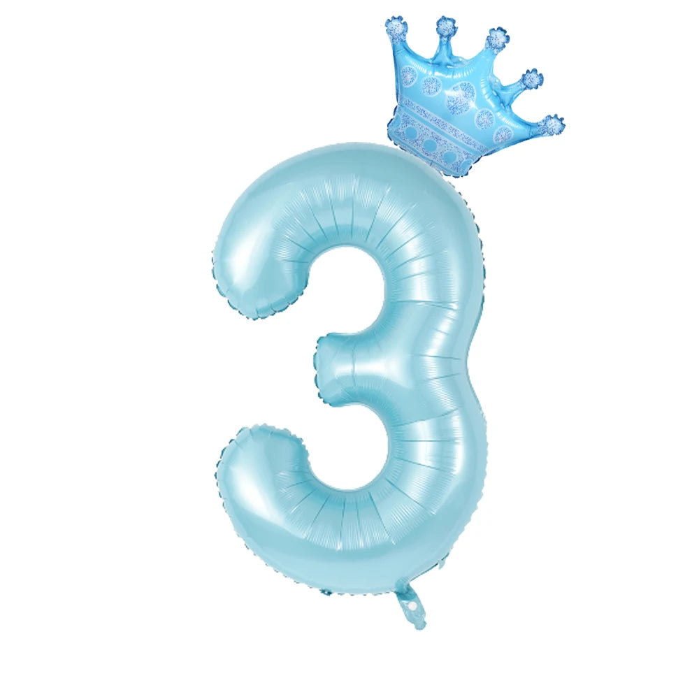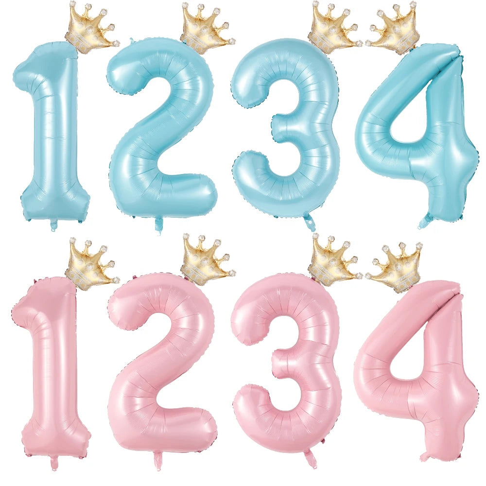 Popxstar 40inch Pastel Light Blue Pink Foil Number Balloon With Crown 1 2 3 4 5 6 Boy Girl Birthday Party Baby Shower Wedding Decoration