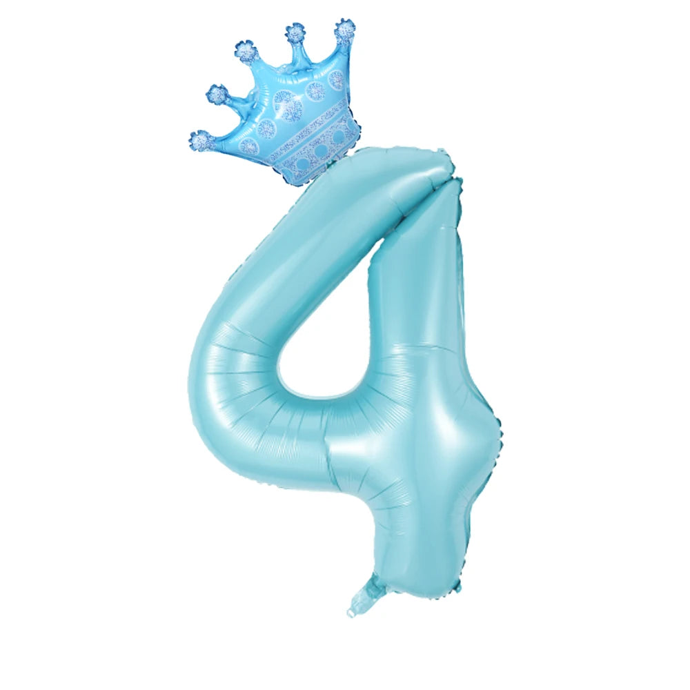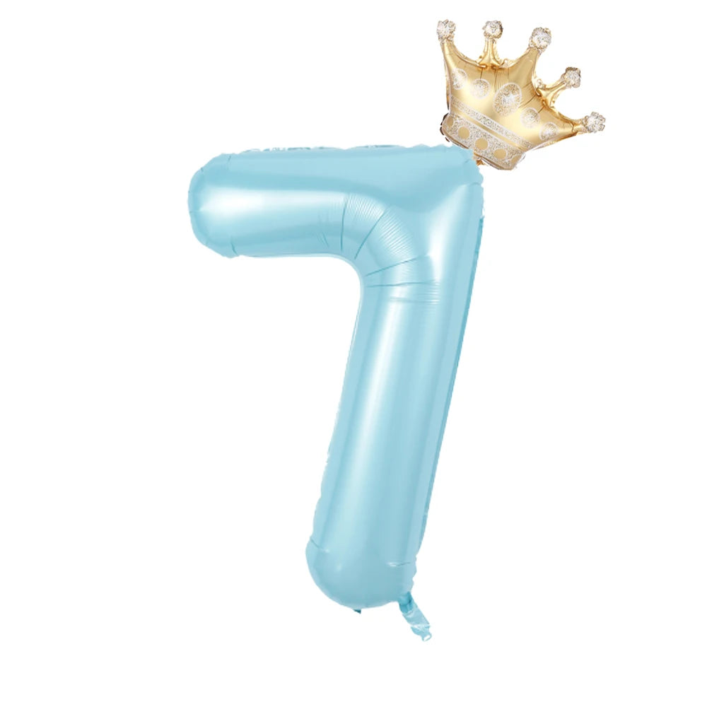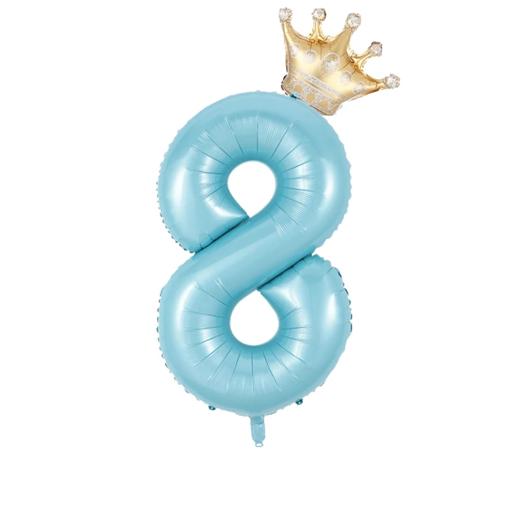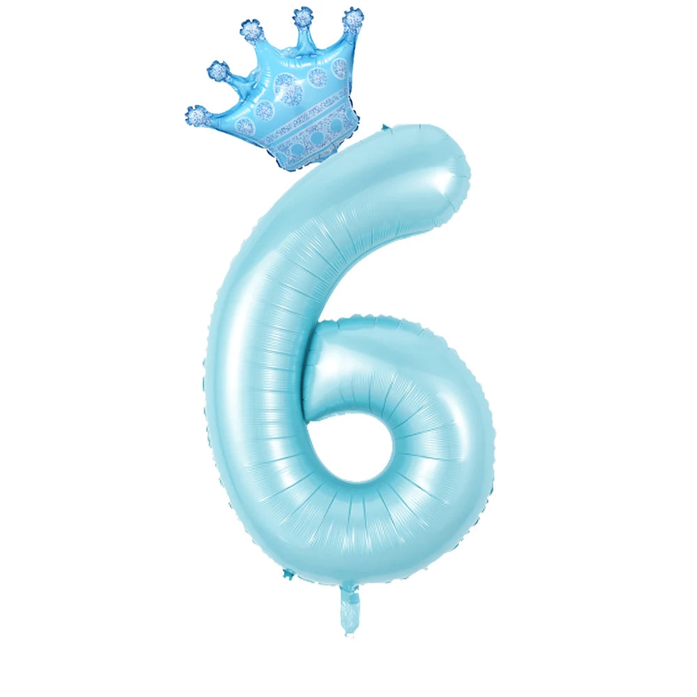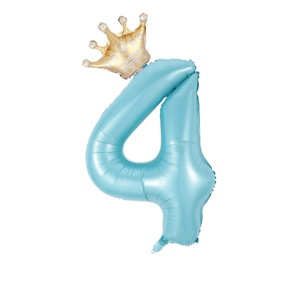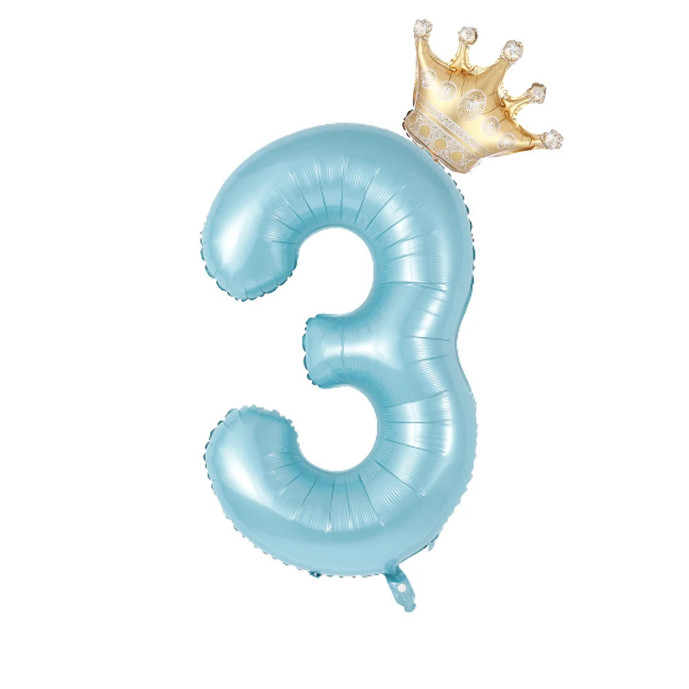 Popxstar 40inch Pastel Light Blue Pink Foil Number Balloon With Crown 1 2 3 4 5 6 Boy Girl Birthday Party Baby Shower Wedding Decoration