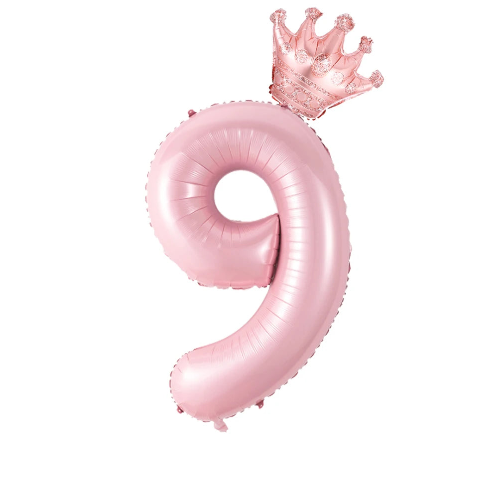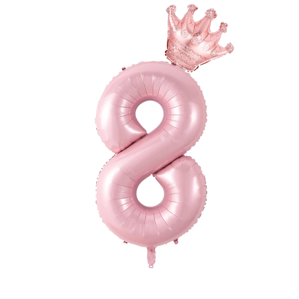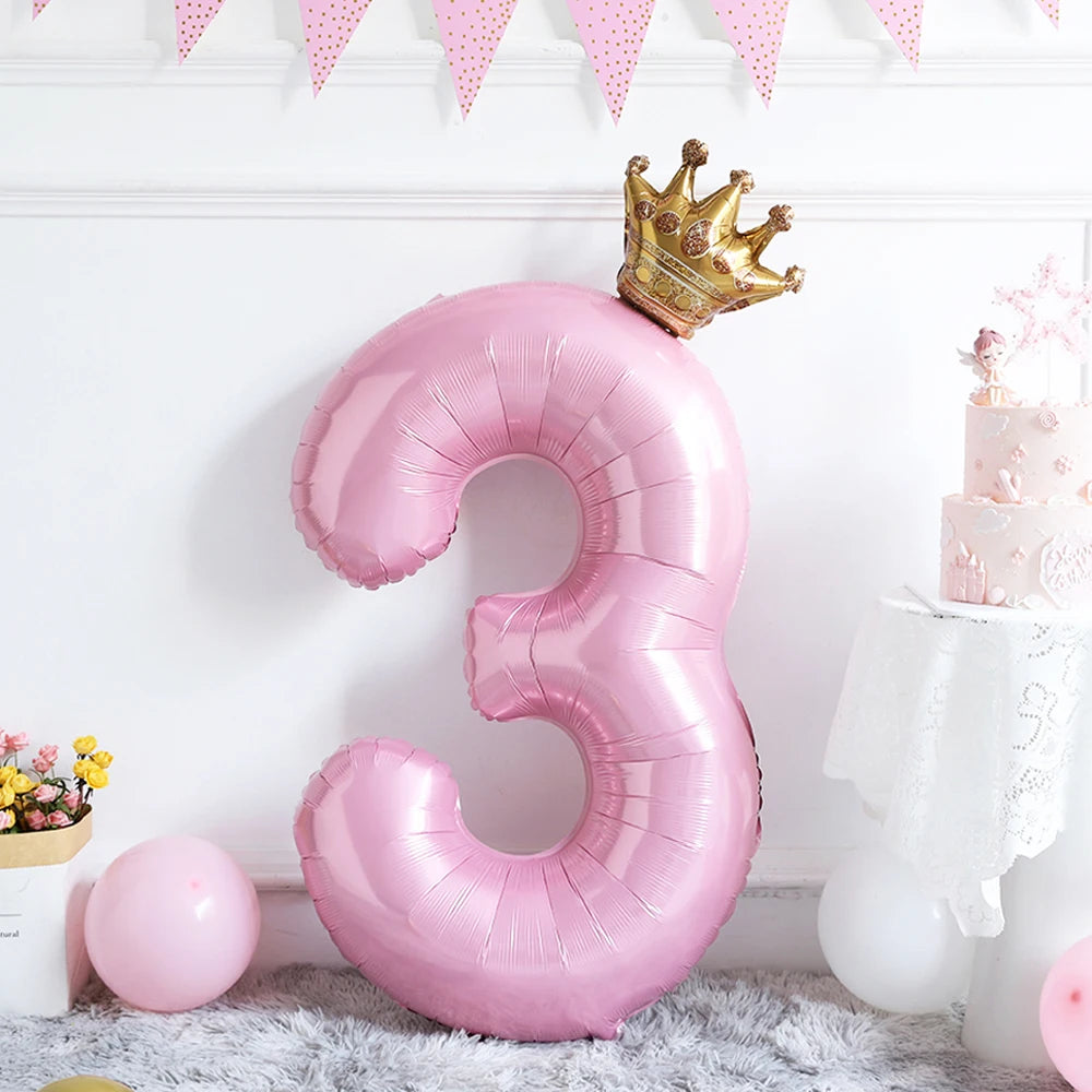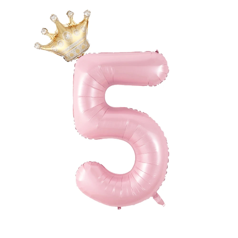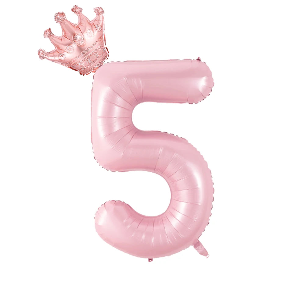 Popxstar 40inch Pastel Light Blue Pink Foil Number Balloon With Crown 1 2 3 4 5 6 Boy Girl Birthday Party Baby Shower Wedding Decoration