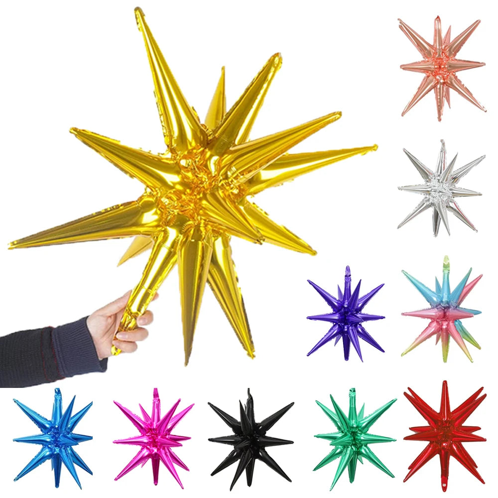 Popxstar 1/2/5pcs Starbust Balloons Rose Gold Silver Gold Explosion Star Foil Balloon for Birthday Christmas Wedding Decor Kid Air Globos