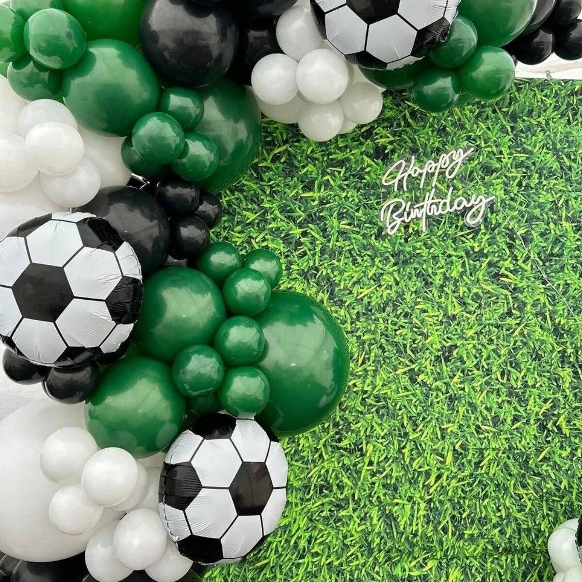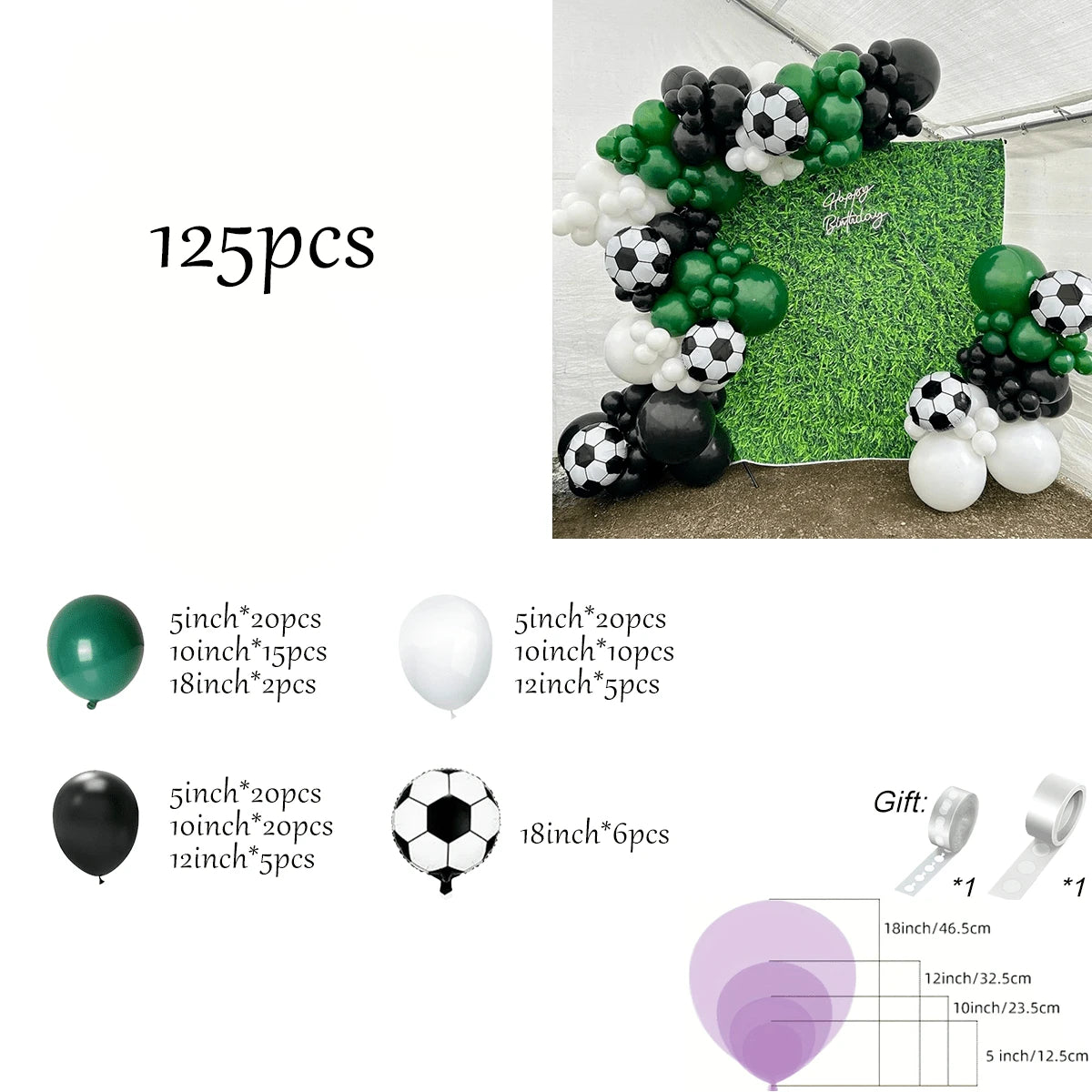 Popxstar 125pcs Football Party Balloons Garland Arch Kit White Green Black Latex Ballon Sports Party Decoration Birthday Party