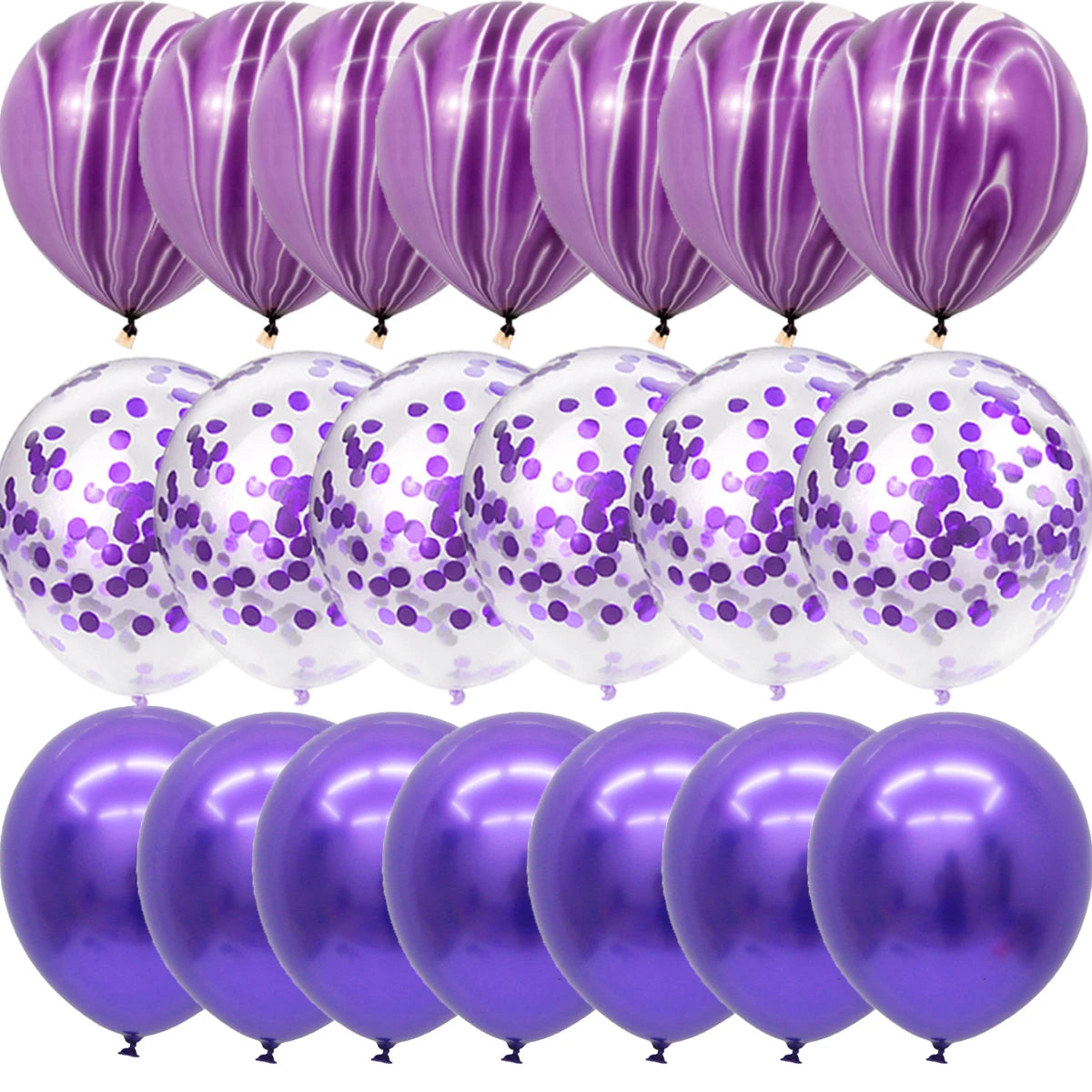 Popxstar  40 Pcs Blue Set Agate Marble Balloons Silver Confetti Balloon Wedding Valentine's Day Baby Shower Birthday Party Decorations