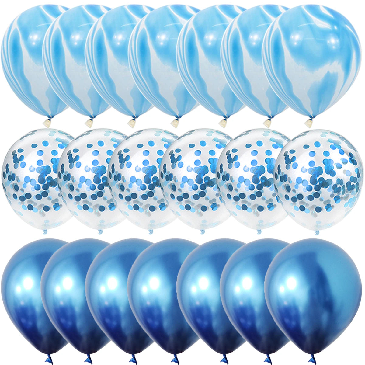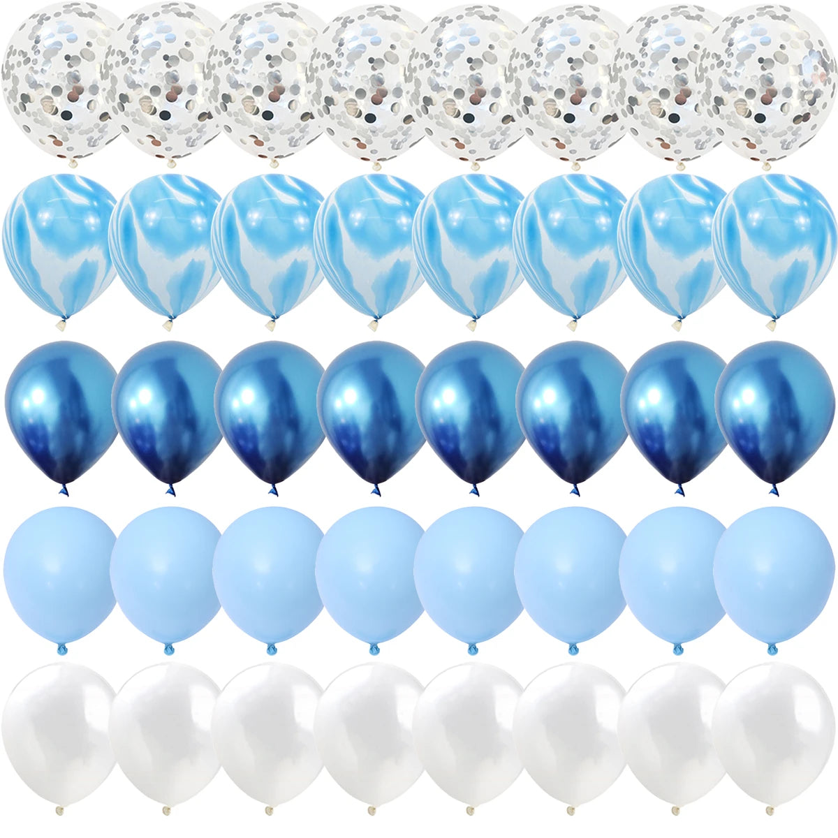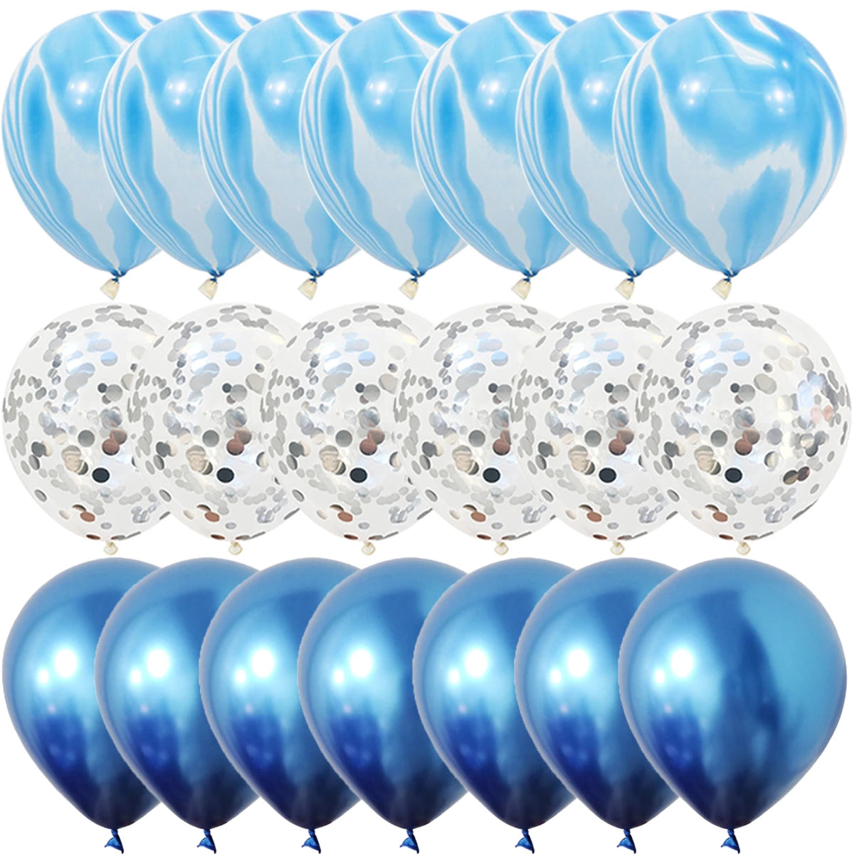 Popxstar 40 Pcs Blue Set Agate Marble Balloons Silver Confetti Balloon Wedding Valentine's Day Baby Shower Birthday Party Decorations