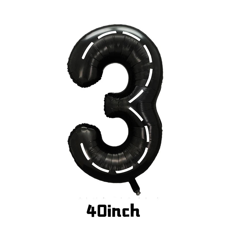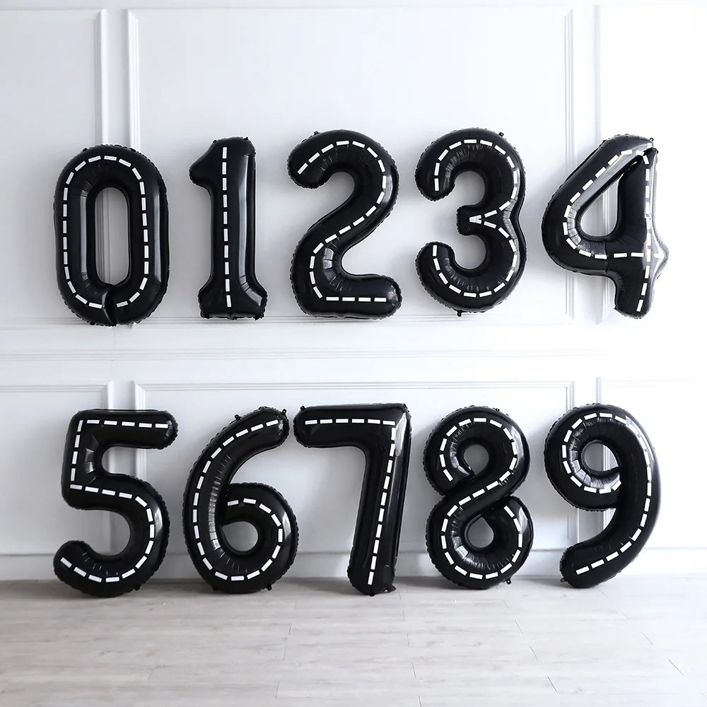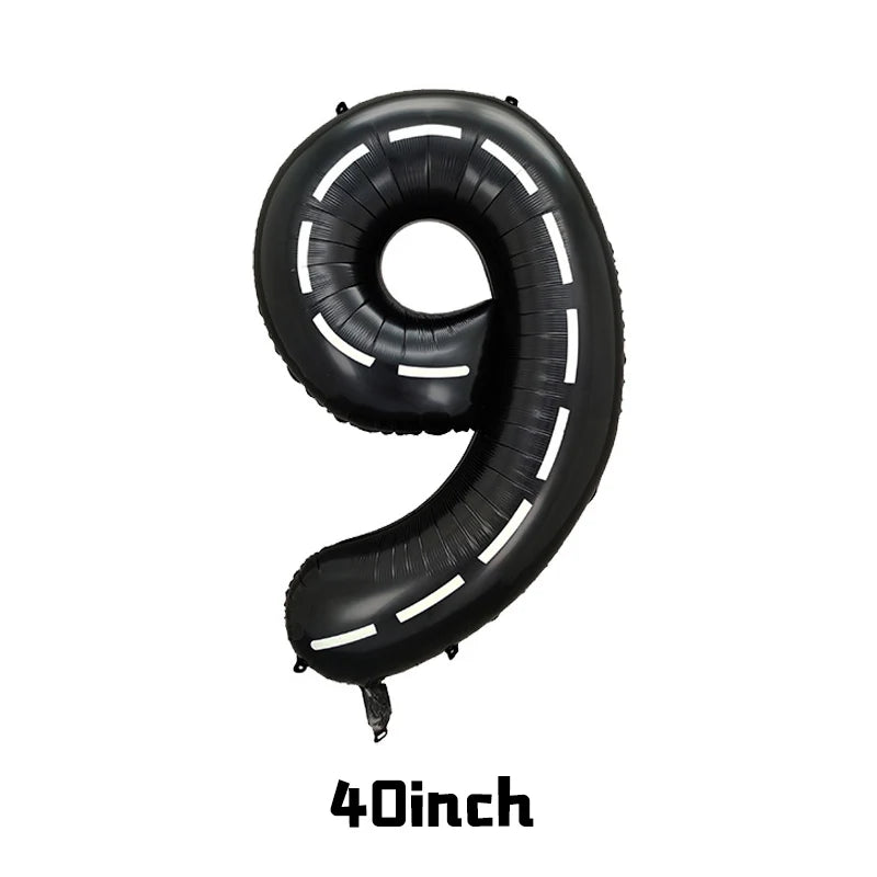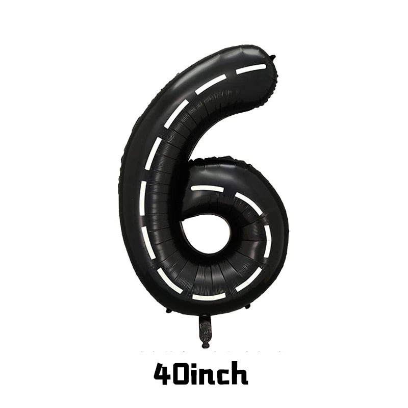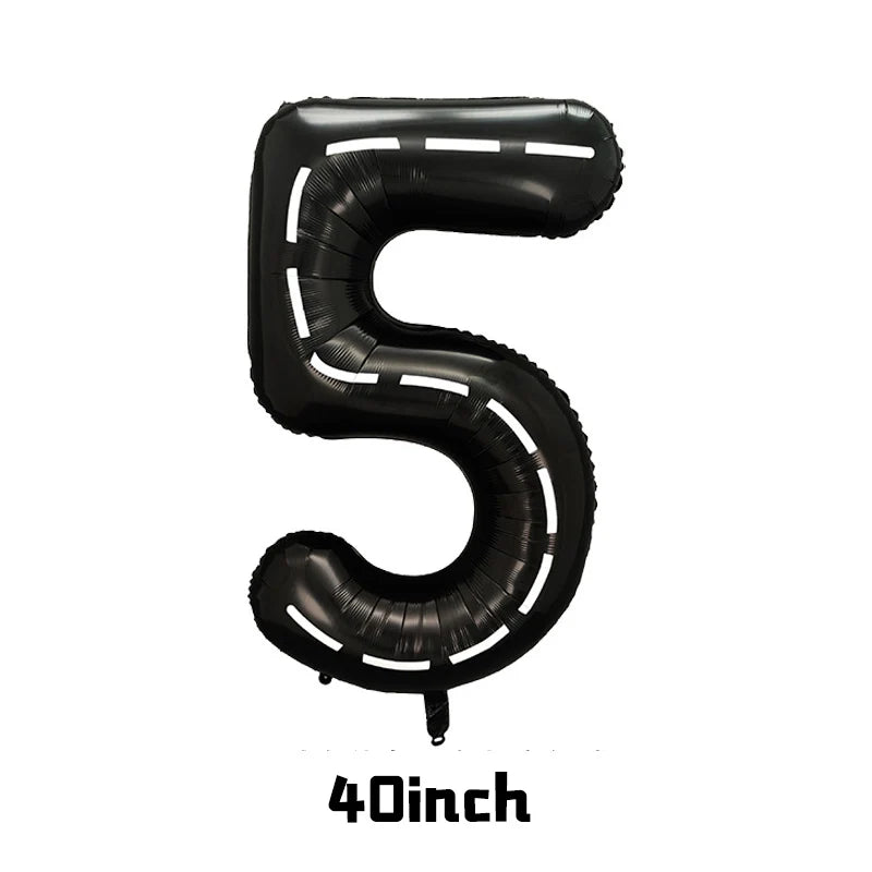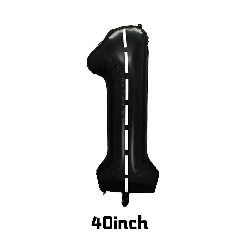 Popxstar 40inch Race Car Birthday Balloons Large Black Number 1 2 3 4 5 6 7 8 9 Foil Balloon for Kids Birthday Race Car Party Decor Suppl