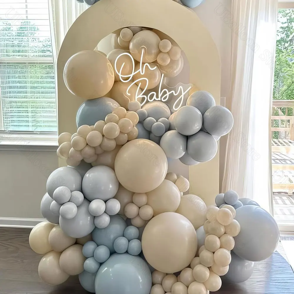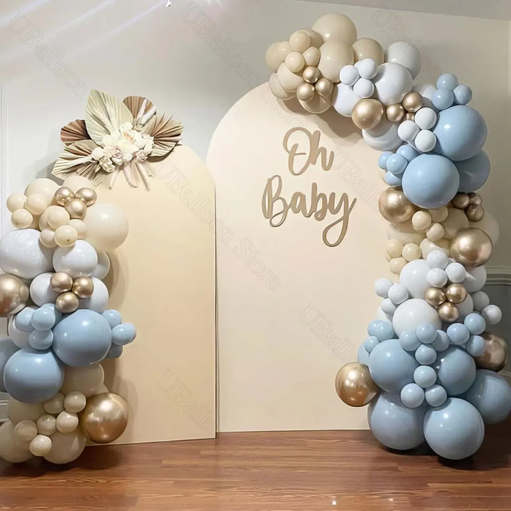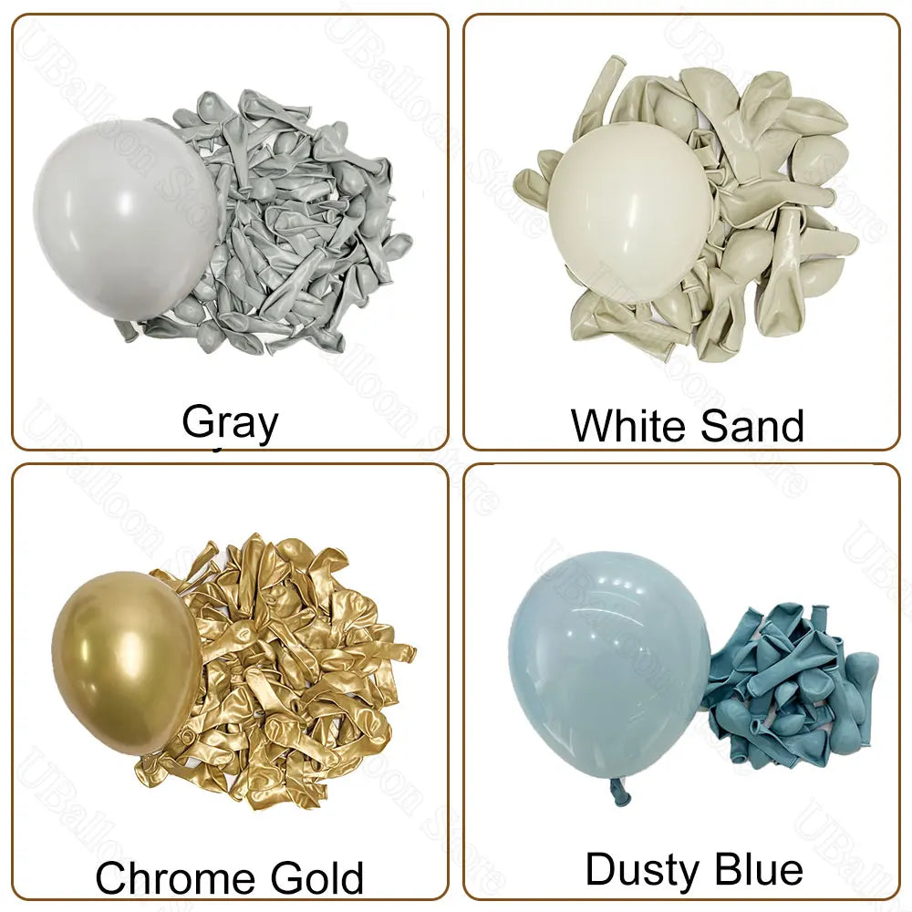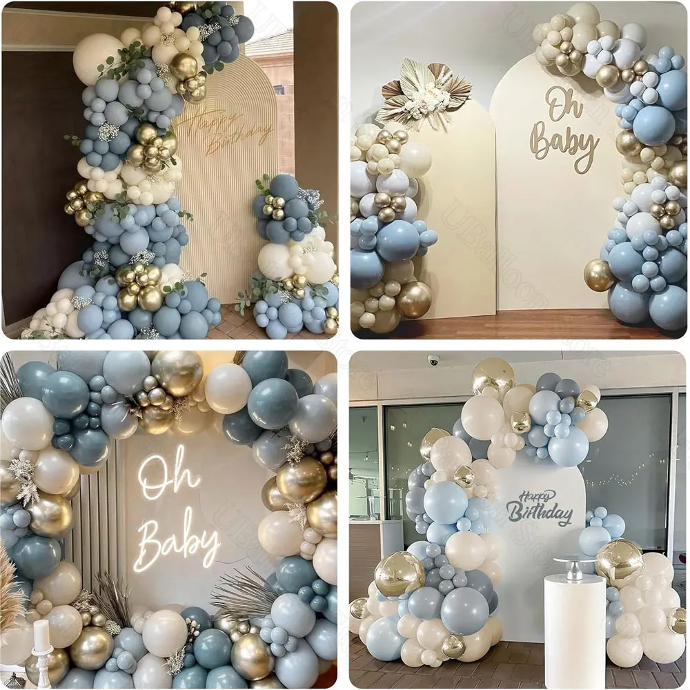Popxstar 40Pcs Dusty Blue Balloons for Baby shower Boho Gray White Sand Chome Gold Dusty Blue Baby Shower Balloons for Boy Birthday Decor