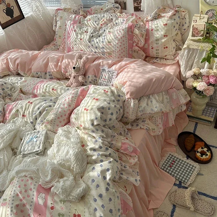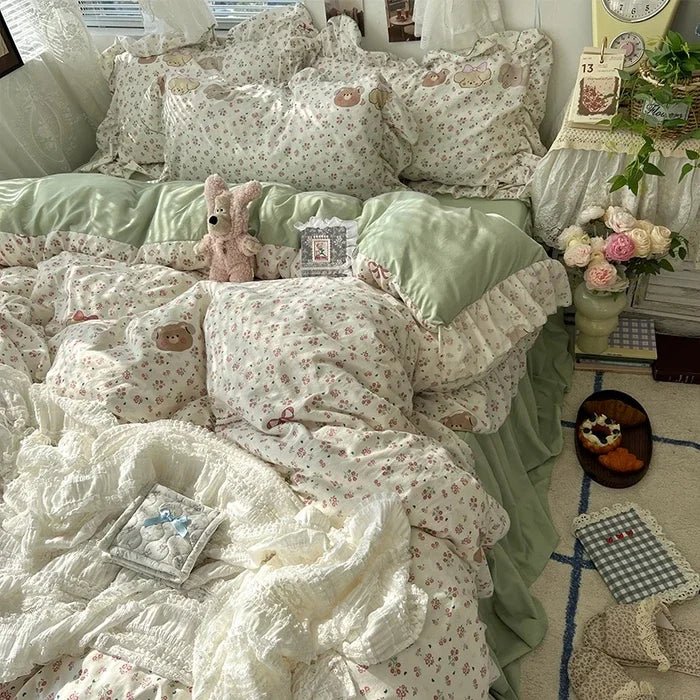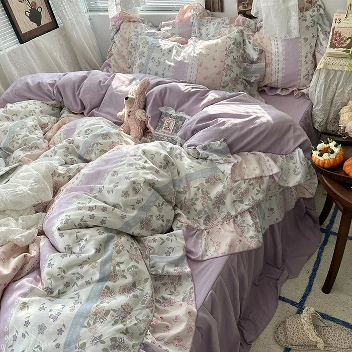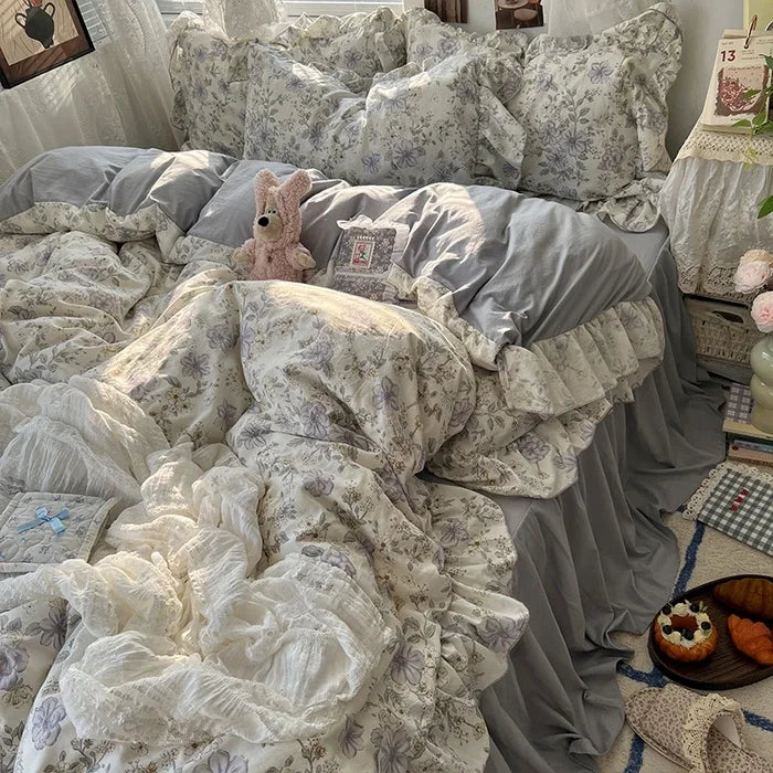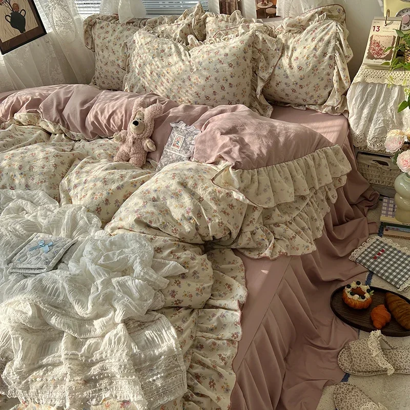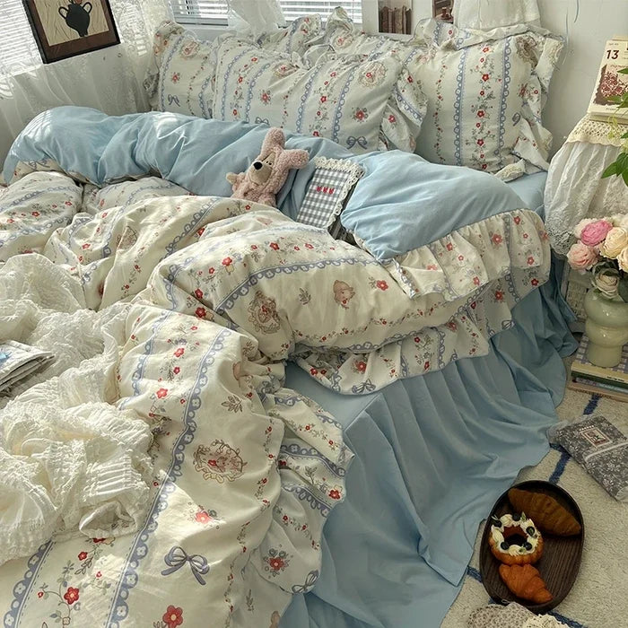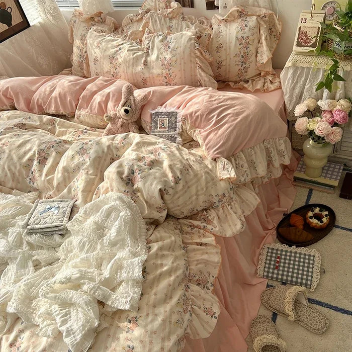 Popxstar New Korean Princess Style Floral Ruffles Bedding Set Skin-friendly Soft Duvet Cover Set Bed Sheet Or Bed Skirt Pillowcases