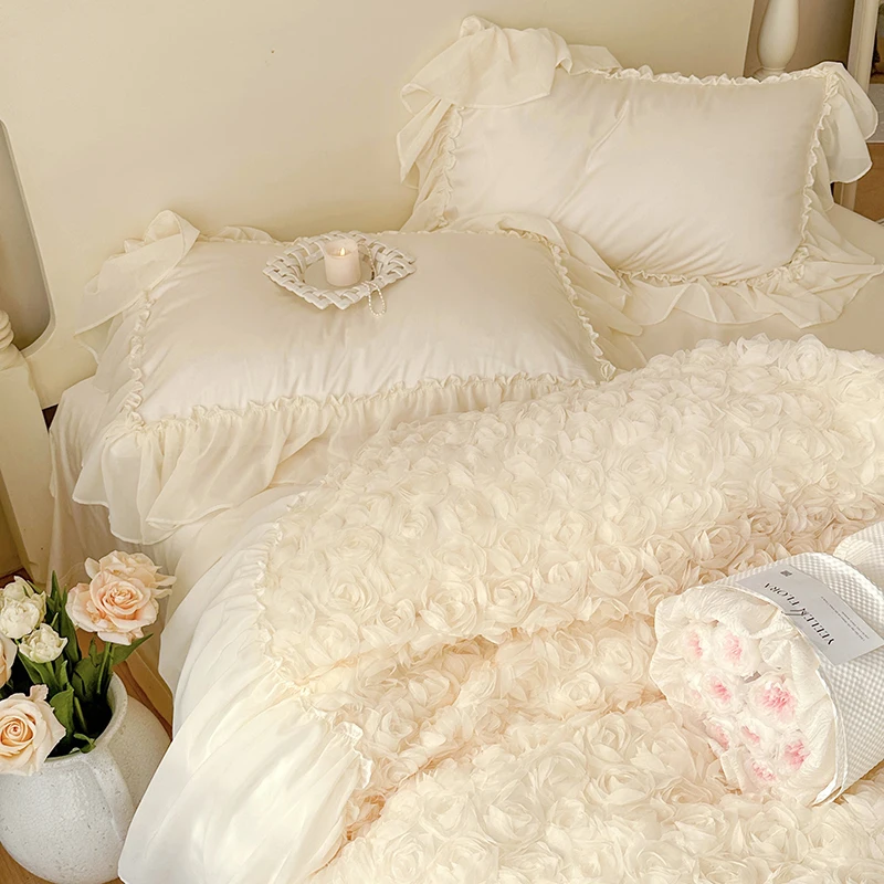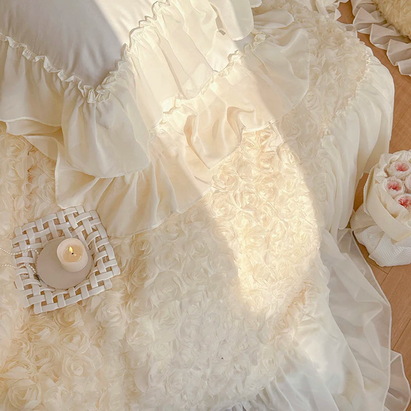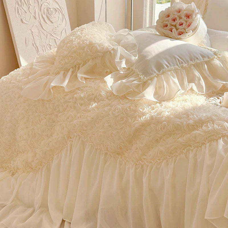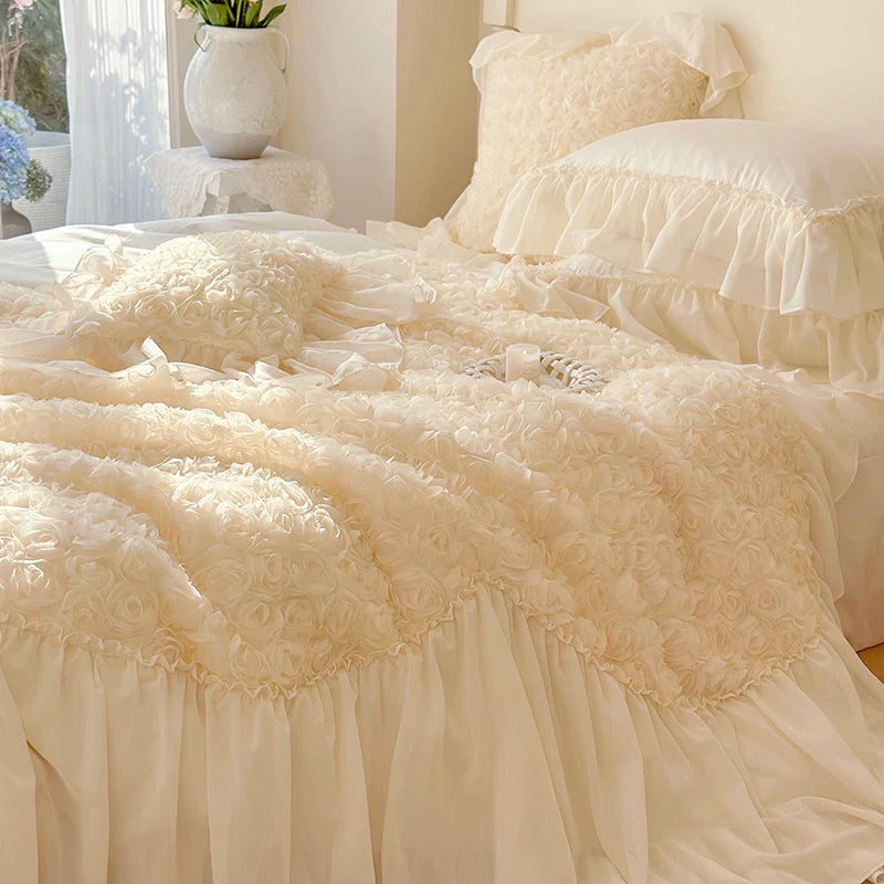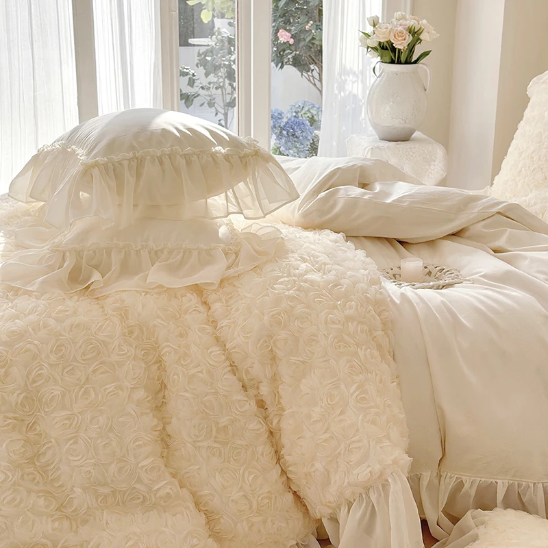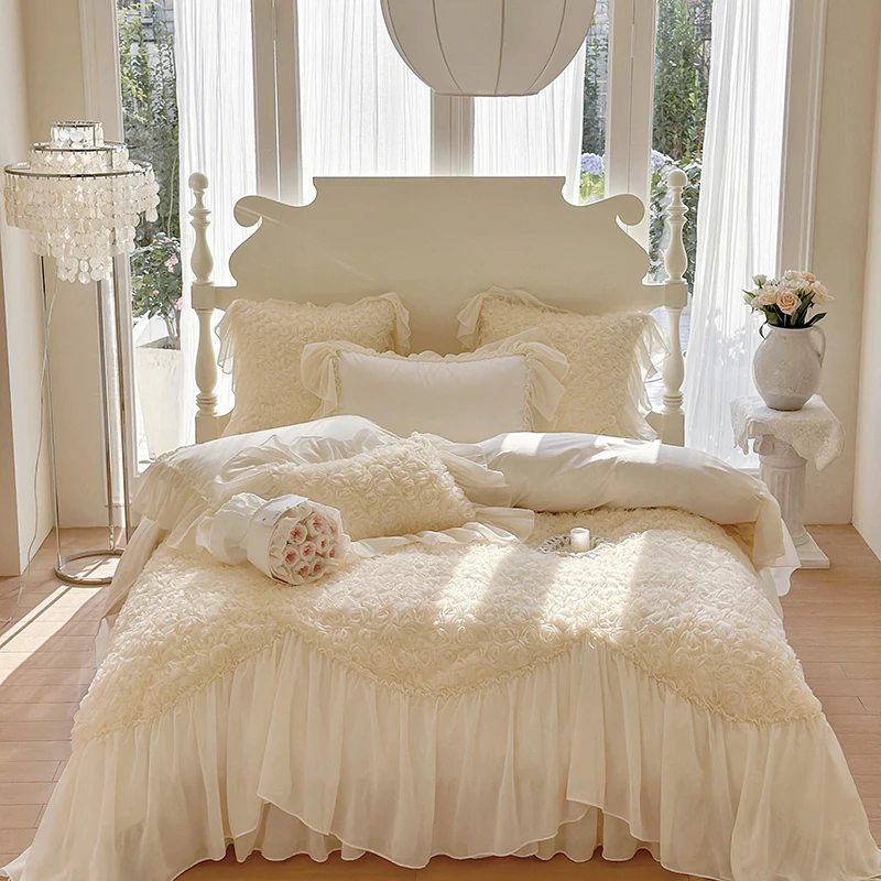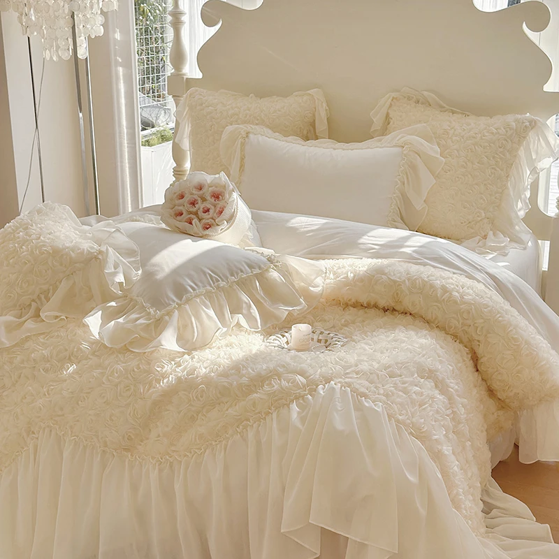 Popxstar Two-thirds Rose Flowers Lace Princess Wedding Bedding Set 1200TC Egyptian Cotton Duvet Cover Flat/Fitted Bed Sheet Pillowcases