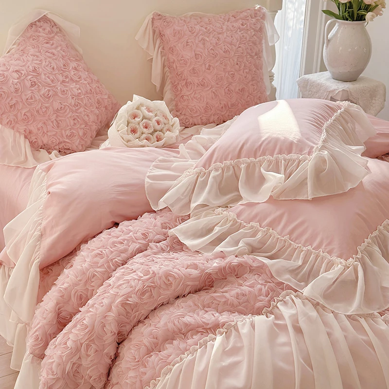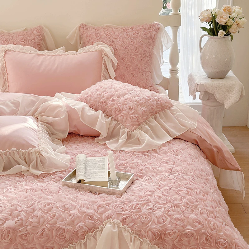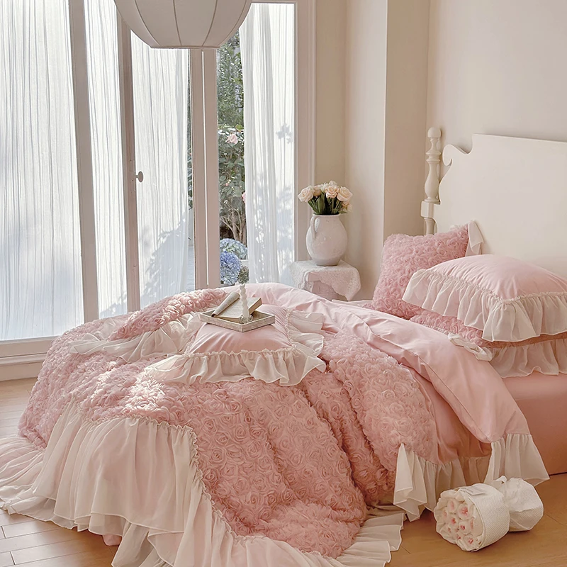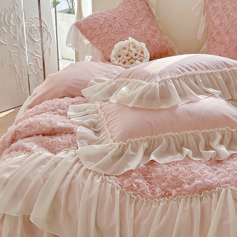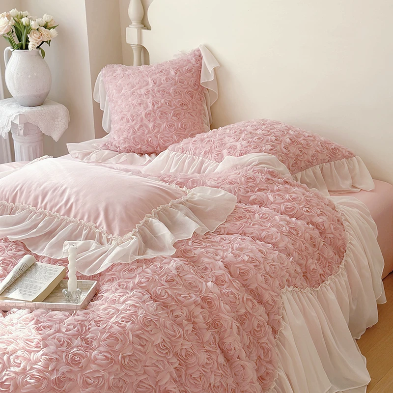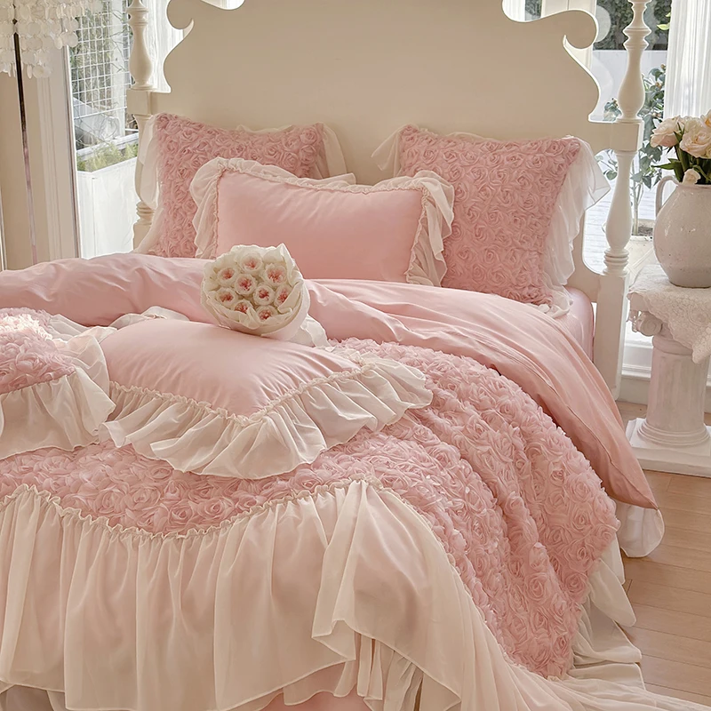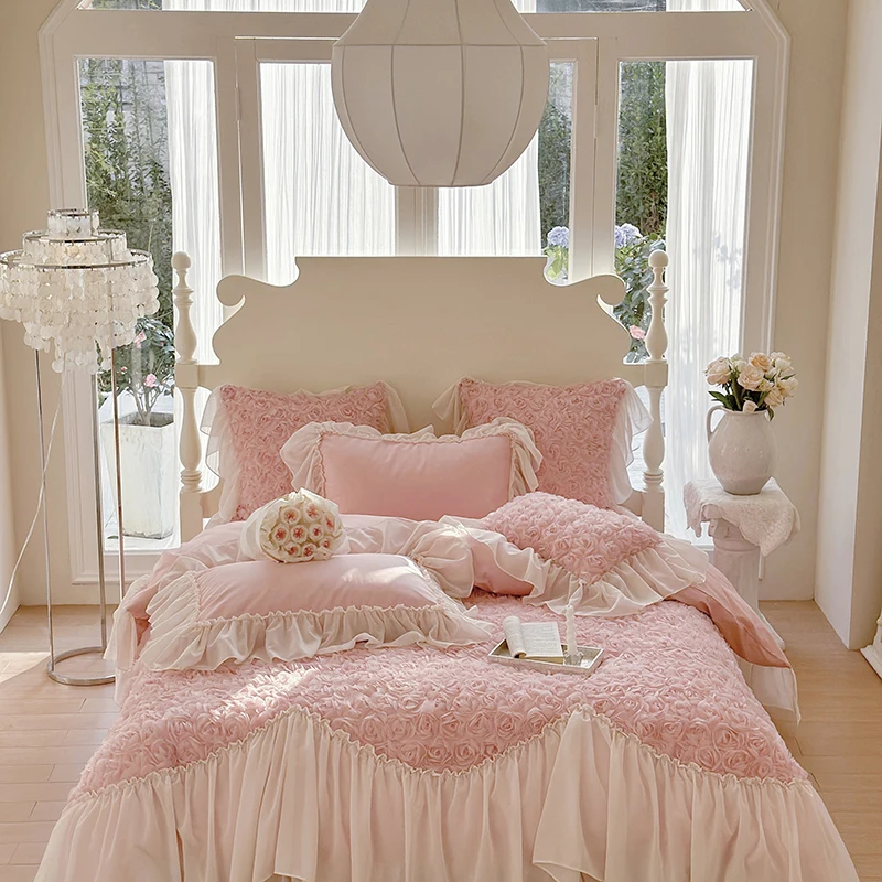 Popxstar Two-thirds Rose Flowers Lace Princess Wedding Bedding Set 1200TC Egyptian Cotton Duvet Cover Flat/Fitted Bed Sheet Pillowcases