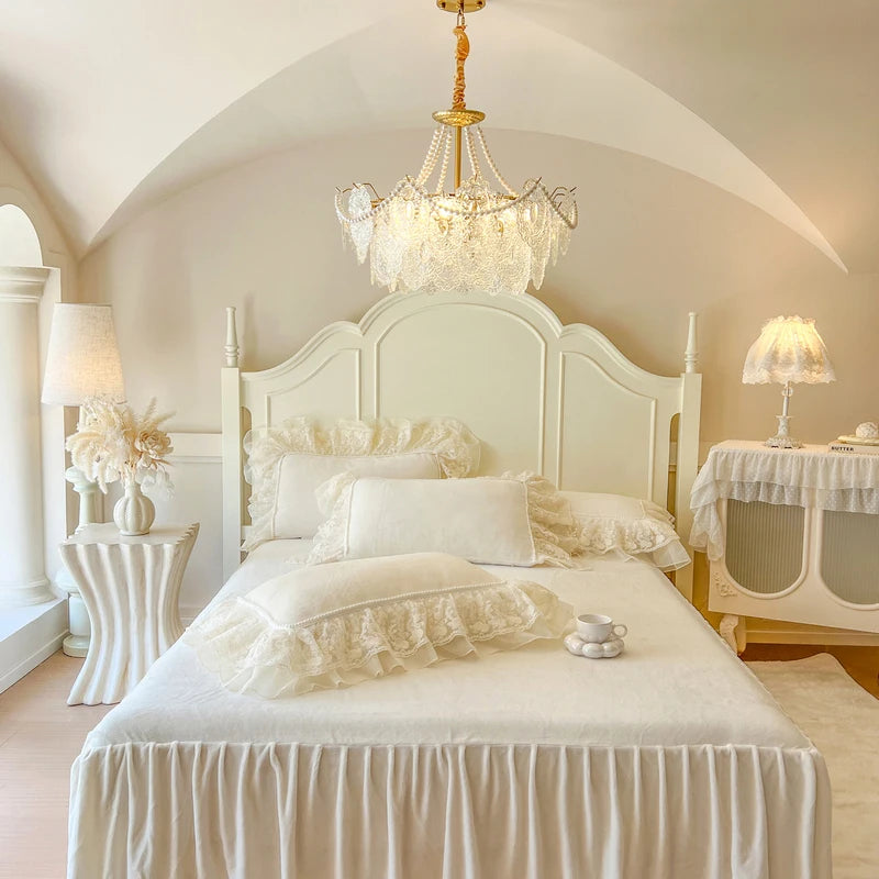 Popxstar Romantic Lace Ruffles Handmade Beads Velvet Winter Warm Thickened Princess Bedding Set Duvet Cover Bed Skirt Pillowcases 4Pcs