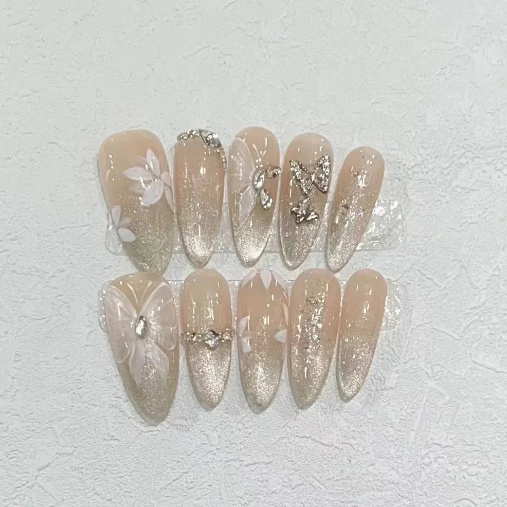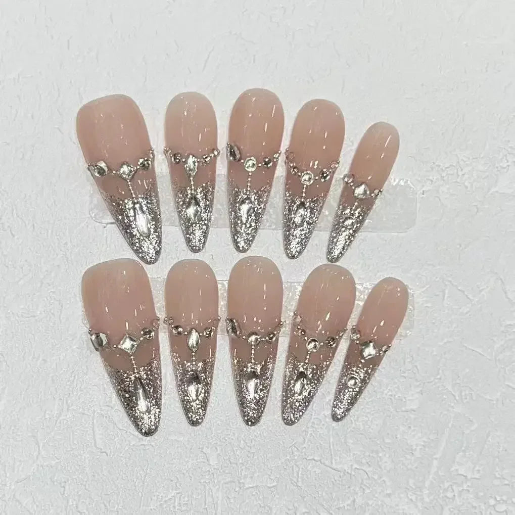 Popxstar 10Pcs Almond Handmade Nude Press on Nails Gradient Rhinestone Decoration False Nails Simple Wearable Manicure Fake Nail Tips
