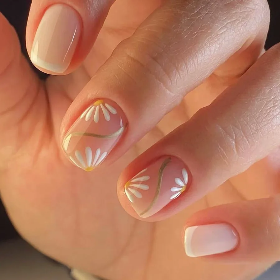 Popxstar  24pcs Wearable False Nails Art Pink Short Square Fake Nail Set Simple Flower Glitter Design Press on Nails Tip Reusable Manicure