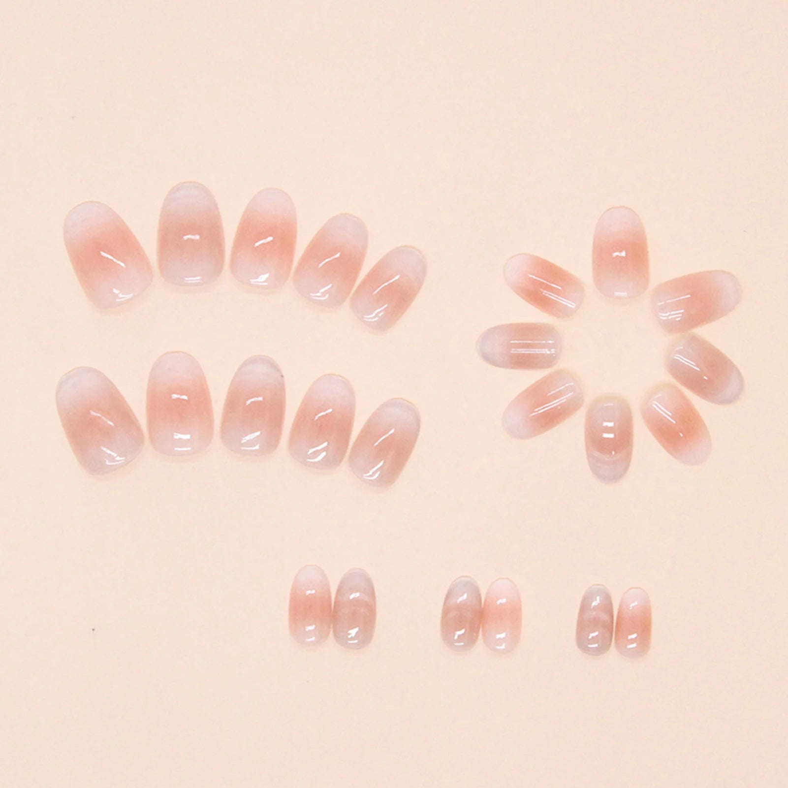 Popxstar Blush Pink Press On Nails 24Pcs Almond Shiny Cat's Eyes Fake Nails Glossy Acrylic Stick-on False Nails Reusable DIY Manicure