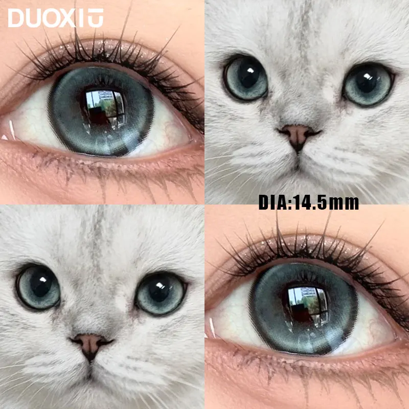Popxstar 1Pair Color Contact Lenses New Product Lan Cat Sclera Blue Green Lenses Degree Prescription -0.00 to -8.00 Beauty Pupils