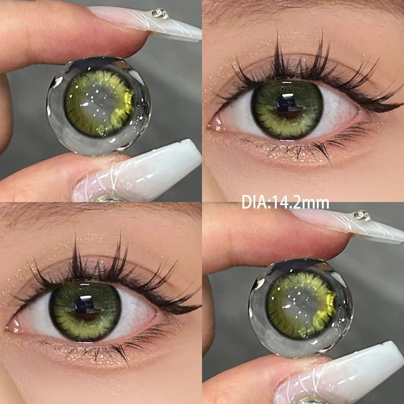 Popxstar 2Pcs Best Selling Color Contact Lenses Myopia Degree -0.00 to -8.00Nature Green Series Soft Lens EyeBeauty Pupil