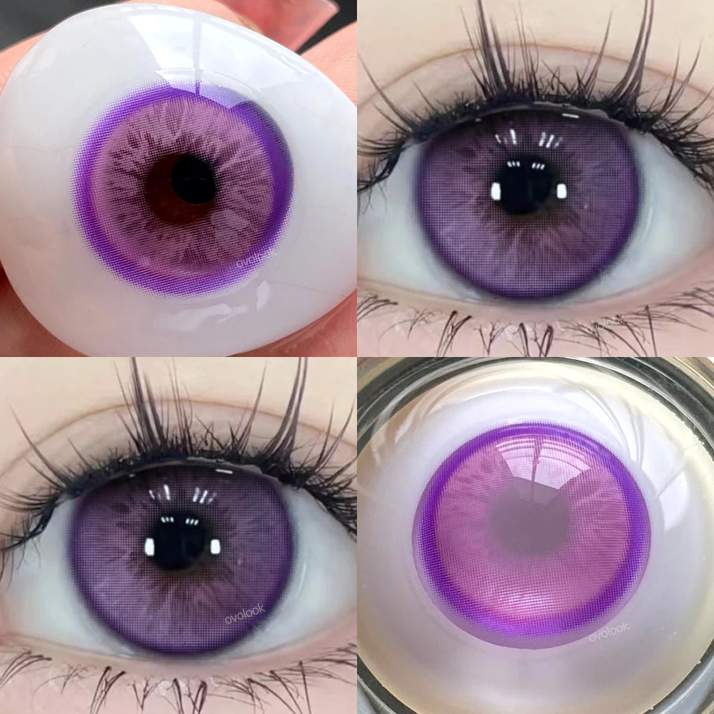 Popxstar -2pcs Brown Colored Contact Lenses for Eyes Purple Beauty Halloween Makeup Lens Big Eye Lens Natural Look Gray Blue Lens