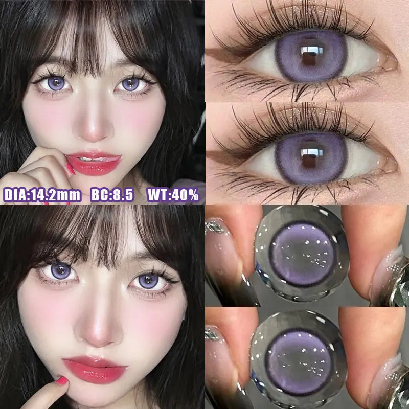 Popxstar 2PCS Contact Lenses with Degree -0.00 to-8.00 Blue Eye Green Korea Lens Purple Black Makeup Beauty Pupils Fast Delivery