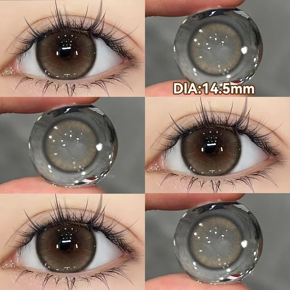 Popxstar 2PCS New Gray Prescription Contact Lenses Fashion Pupils Cosmetics Eye Color Lenses Myopia Colored Contact Lenses Brown
