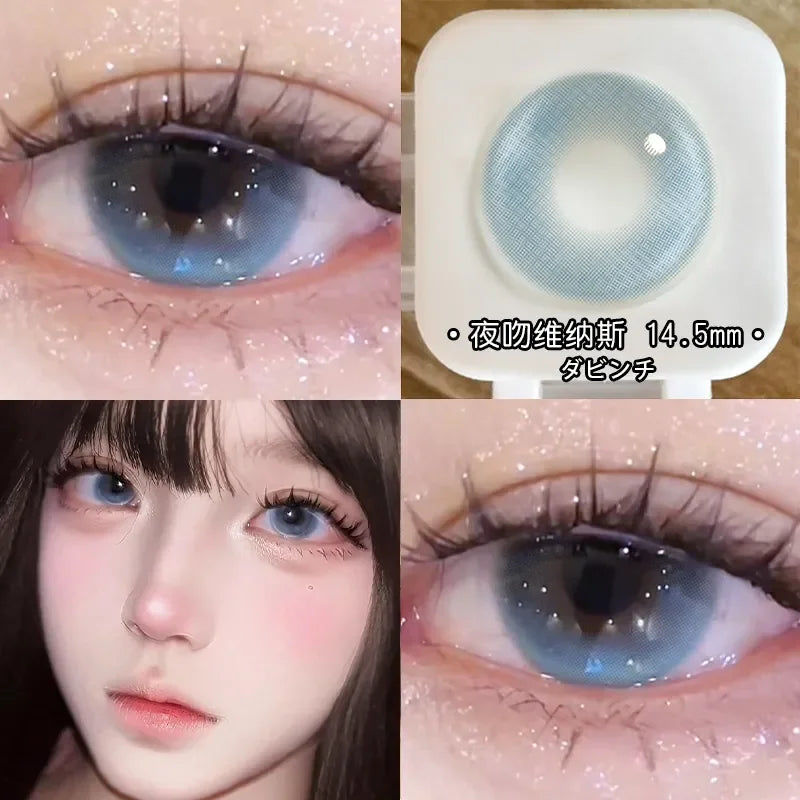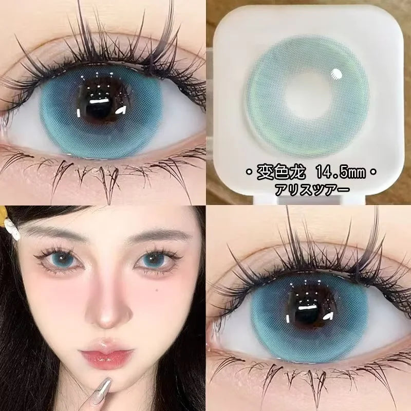 Popxstar 2PCS New Green Prescription Contact Lenses Fashion Pupils Cosmetics Eye Color Lenses Myopia Colored Contact Lenses Blue