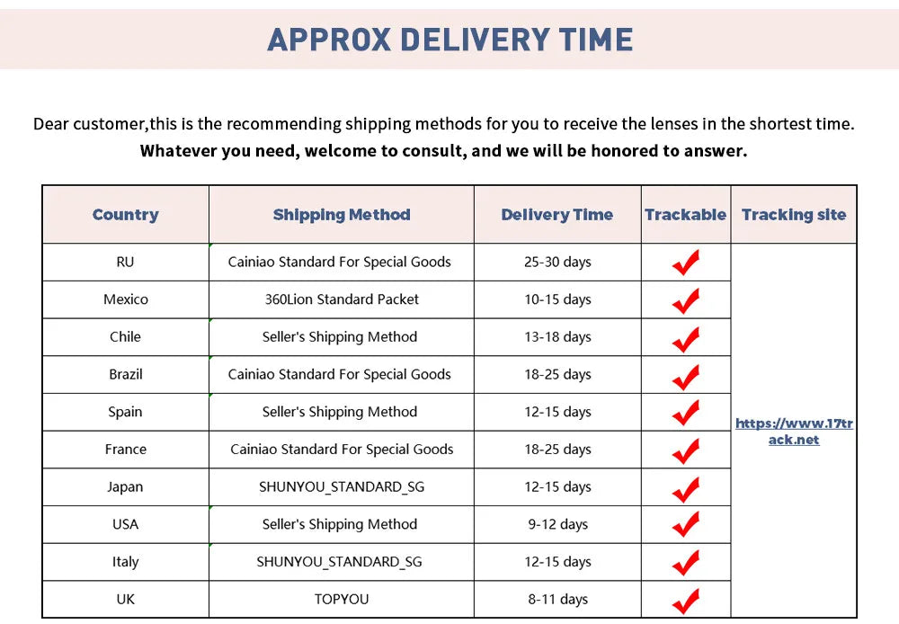 We Offer Fast Global Shipping (Delivery Within 7-15 Working day)