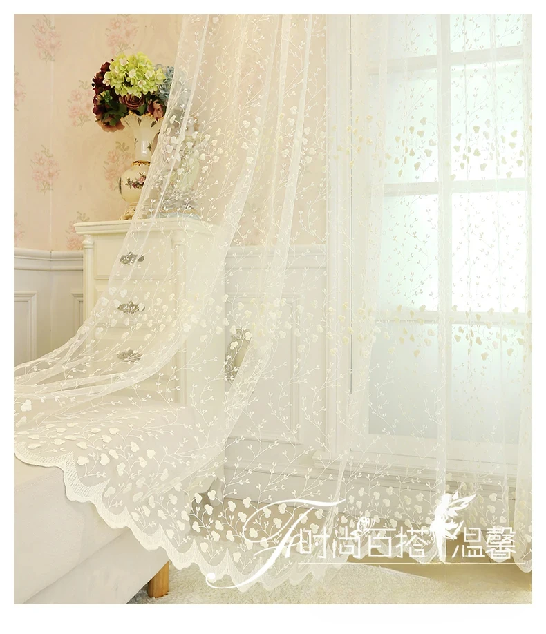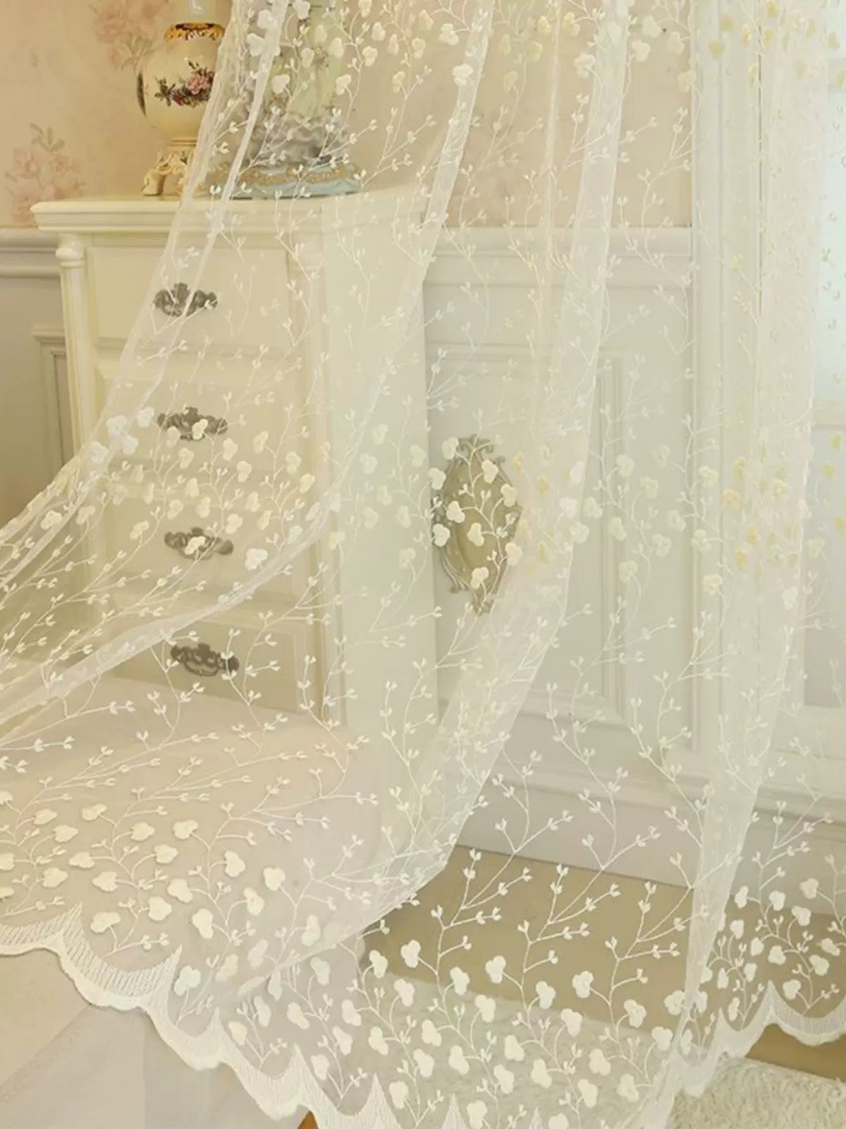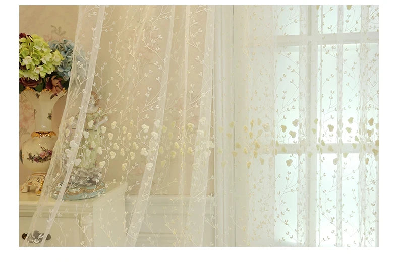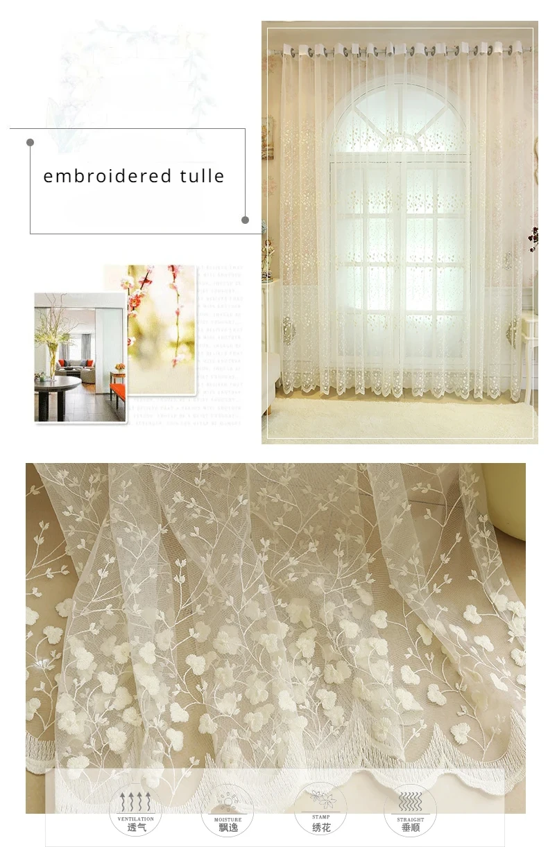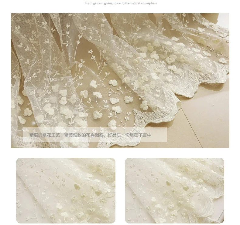 Popxstar  French Beige Lace Flower Embroidery Sheer Tulle Curtains for Living Room Bedroom Kitchen Window Drapes Voile Cheap Yarn Cortinas