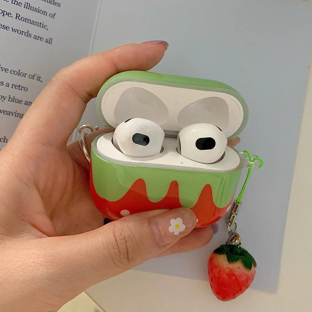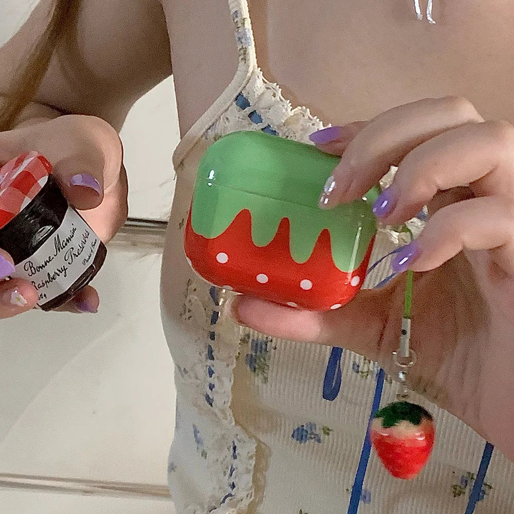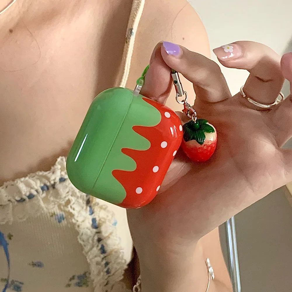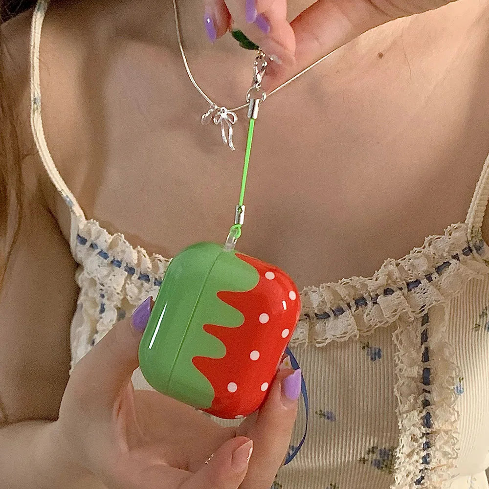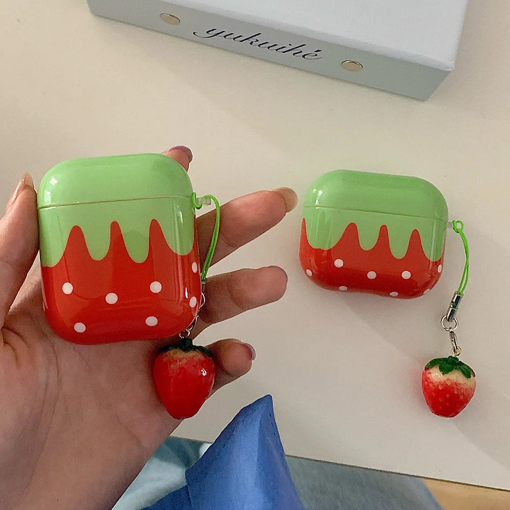 Popxstar Korea 3D Lovely Fresh Strawberry Pattern Soft Silicone Cover for Airpods 1 2 3 Pro 2 Wireless Bluetooth Earphone Charge Box Case