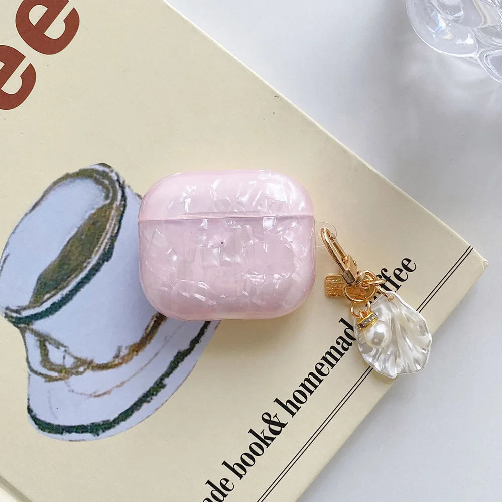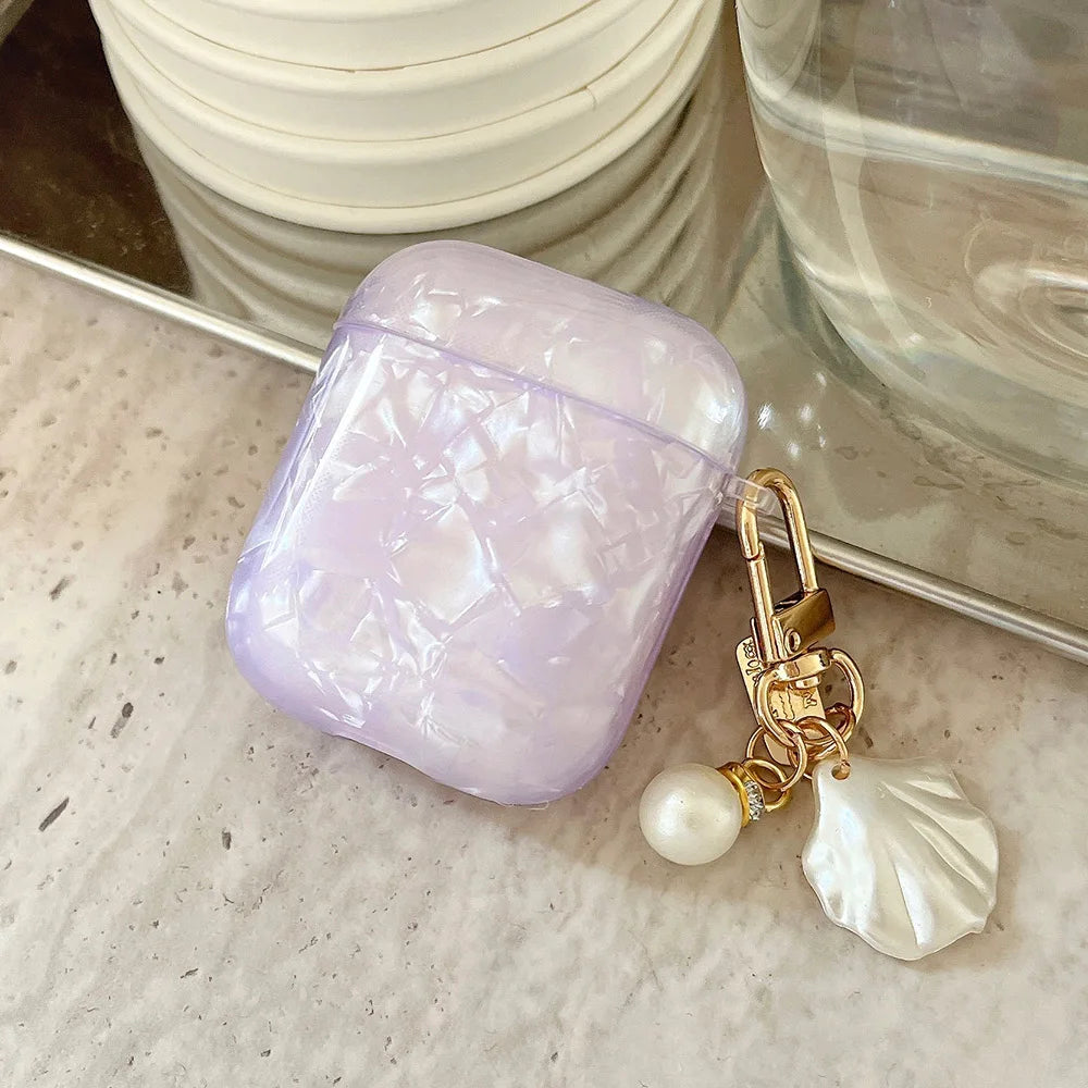 Popxstar  Luxury Purple Pearly Shell Pendant Silicone Case For AirPods 1 2 3 4 pro 2 Wireless Bluetooth Earphone Accessories