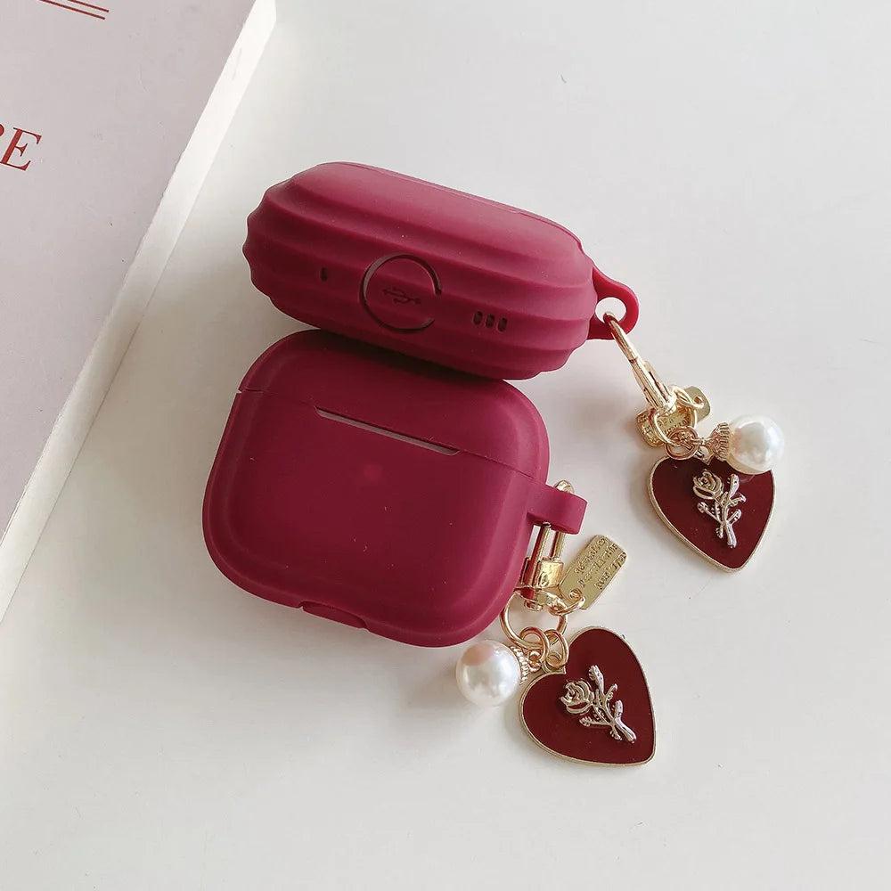 Popxstar soft wine red square earphones case with love pendant silicone Integrated protection cover for airpods 2 3 pro 2 non-slip bumper