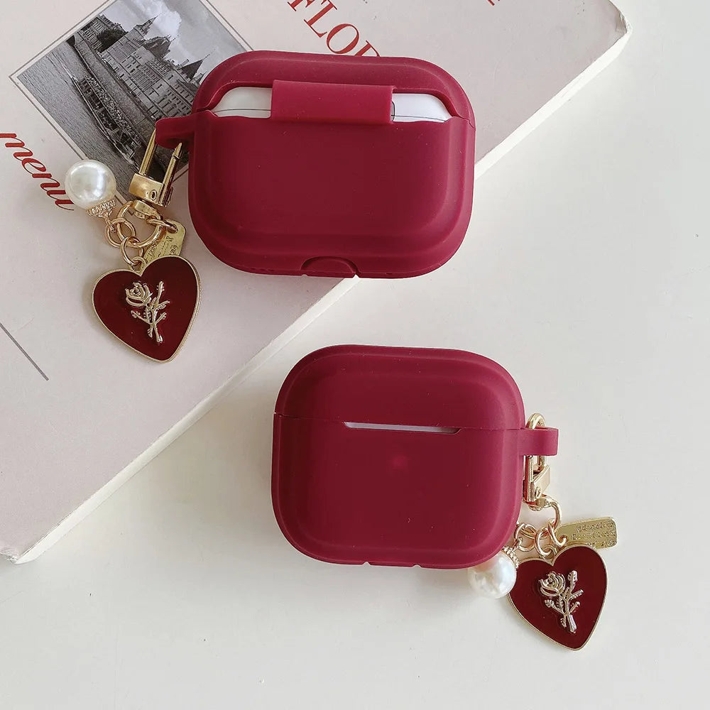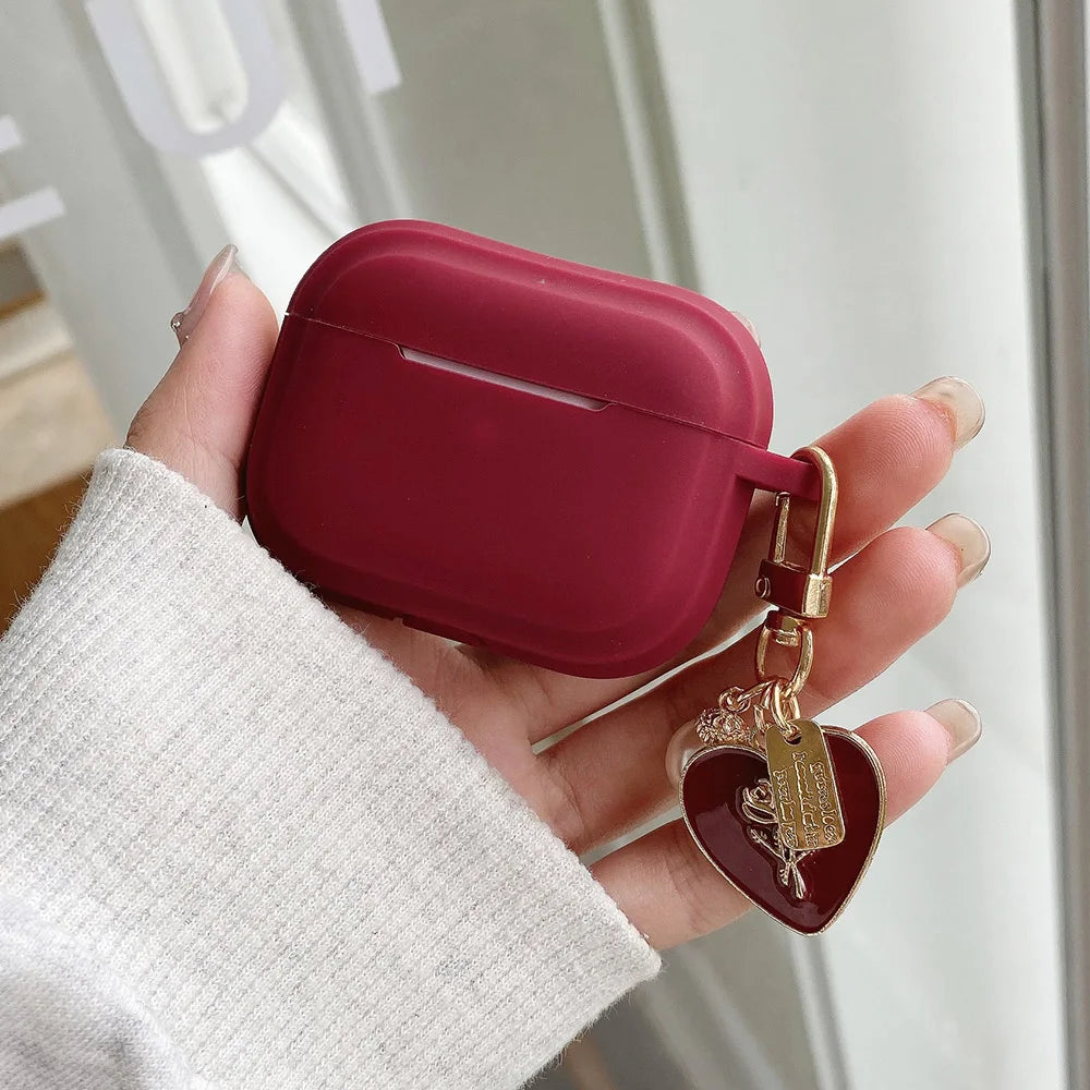 Popxstar  soft wine red square earphones case with love pendant silicone Integrated protection cover for airpods 2 3 pro 2 non-slip bumper