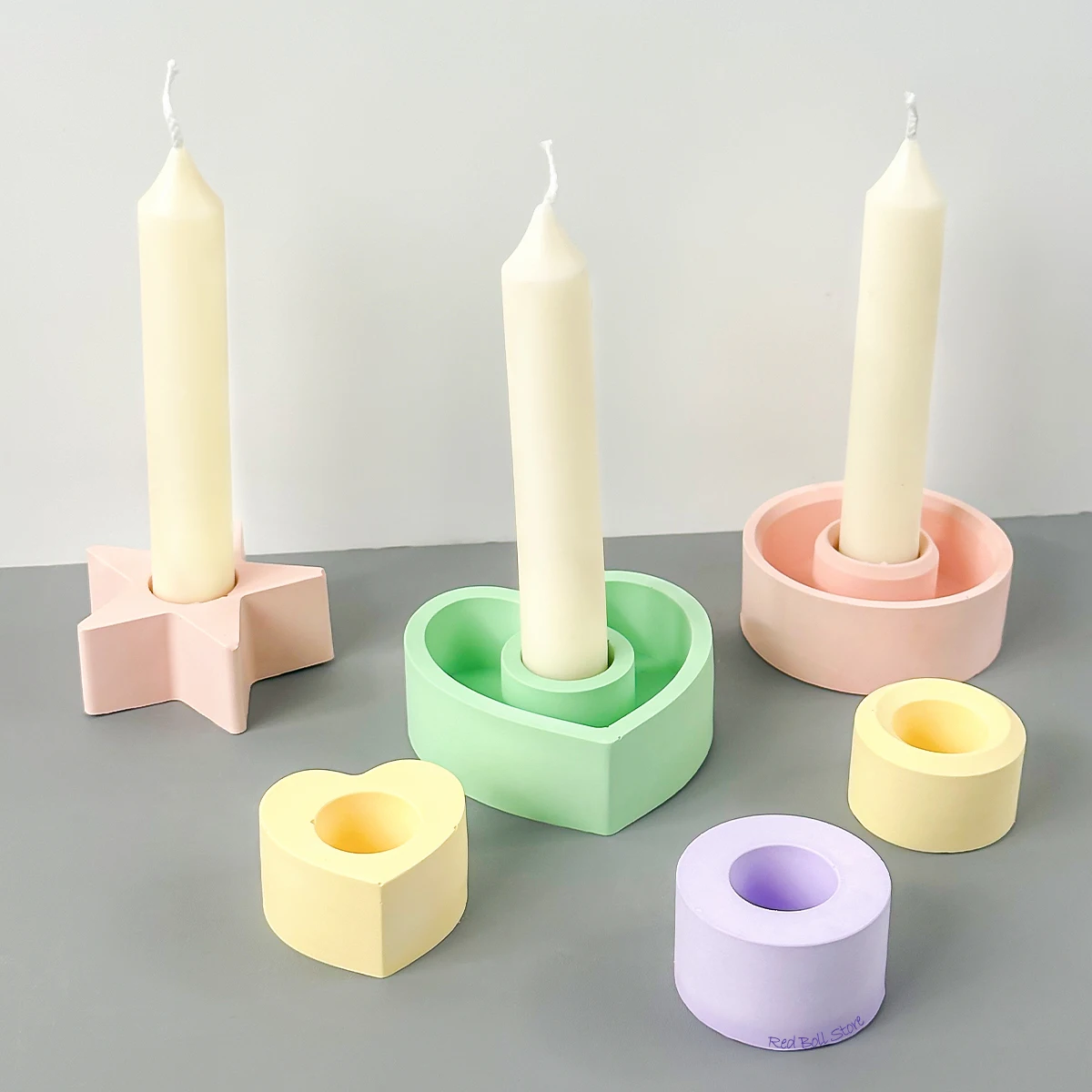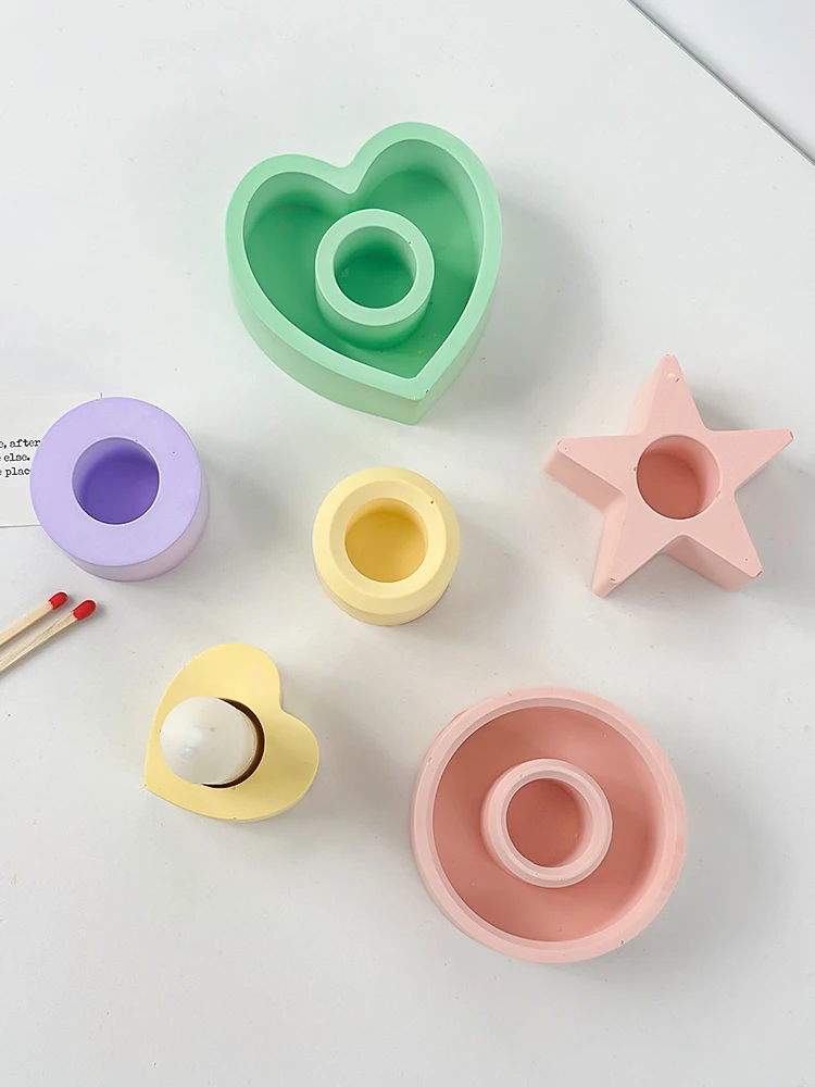 DIY Round Candle Holder Silicone Molds Star Heart Shape Plaster Resin Candlestick Mould Candle Accessories Tool Home Table Decor