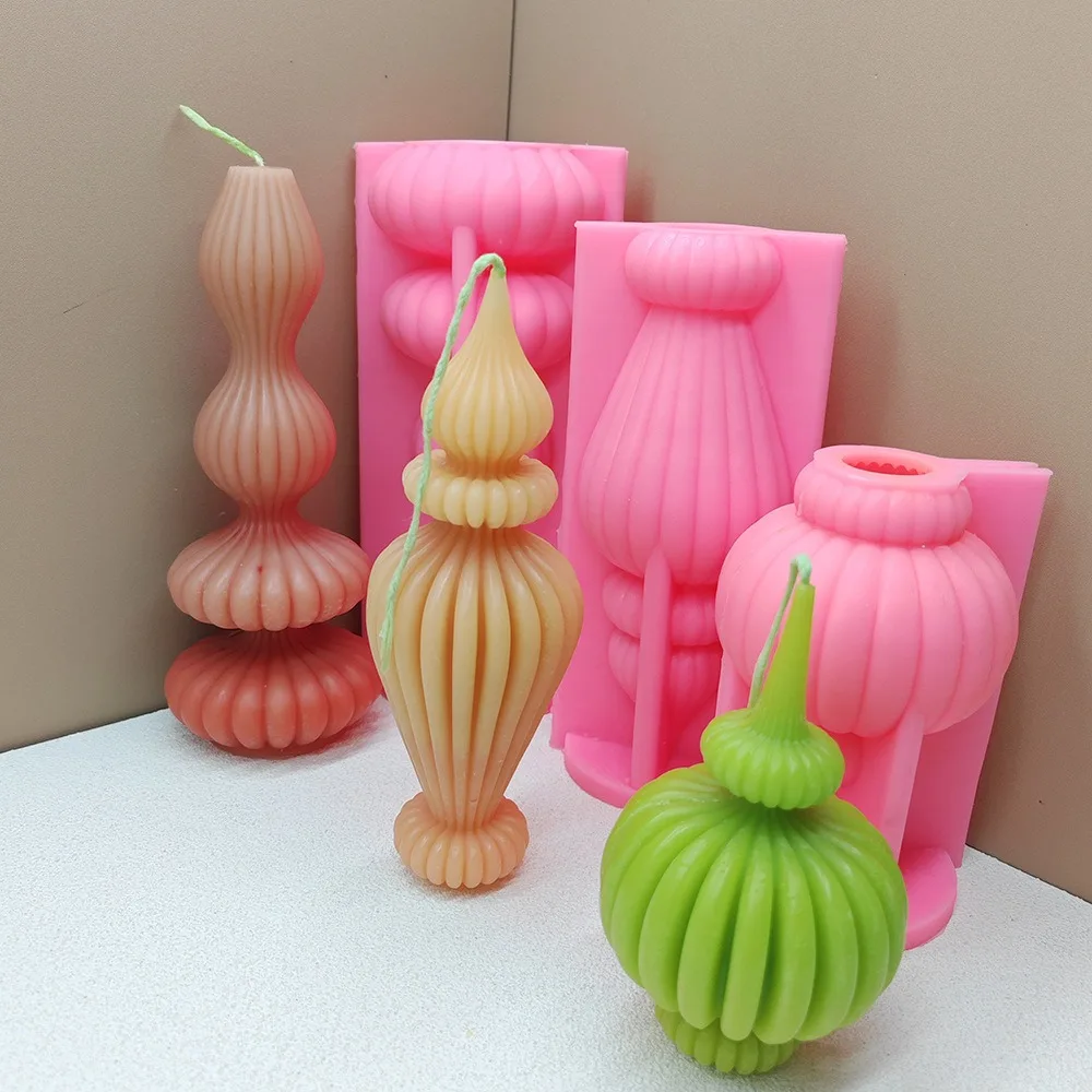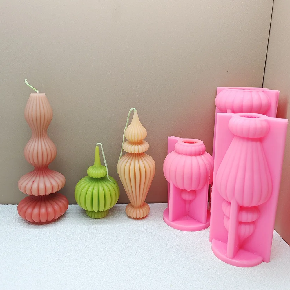 Popxstar 4 Story Geometry Candle Silicone Molds Stripe Circular Soap Resin Mould Chocolate Making Gypsum Home Party Dinner Decor DIY Gift